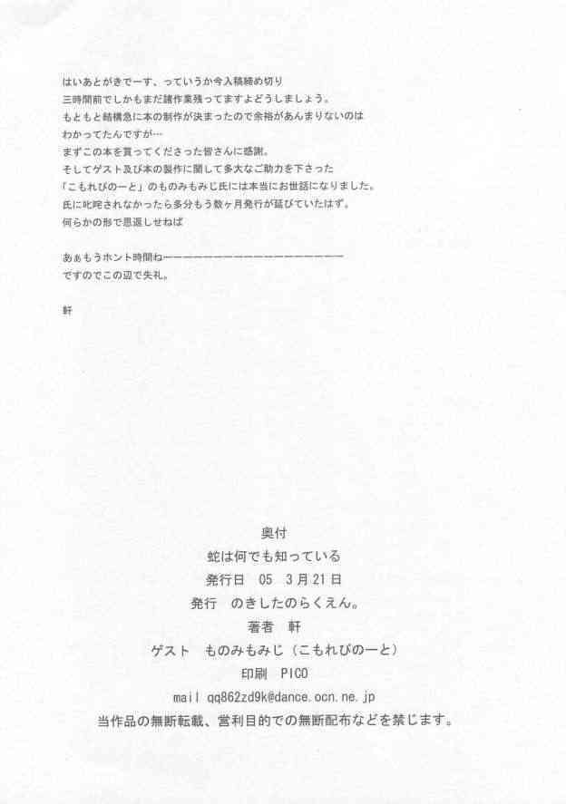 (CSP4) [のきしたのらくえん (軒)] 蛇は何でもしっている。 (Fate/Hollow Ataraxia)Report (CSP4) [Nokishita no Rakuen (Noki)] Hebi wa Nandemo Shitteiru. (Fate/Hollow Ataraxia)