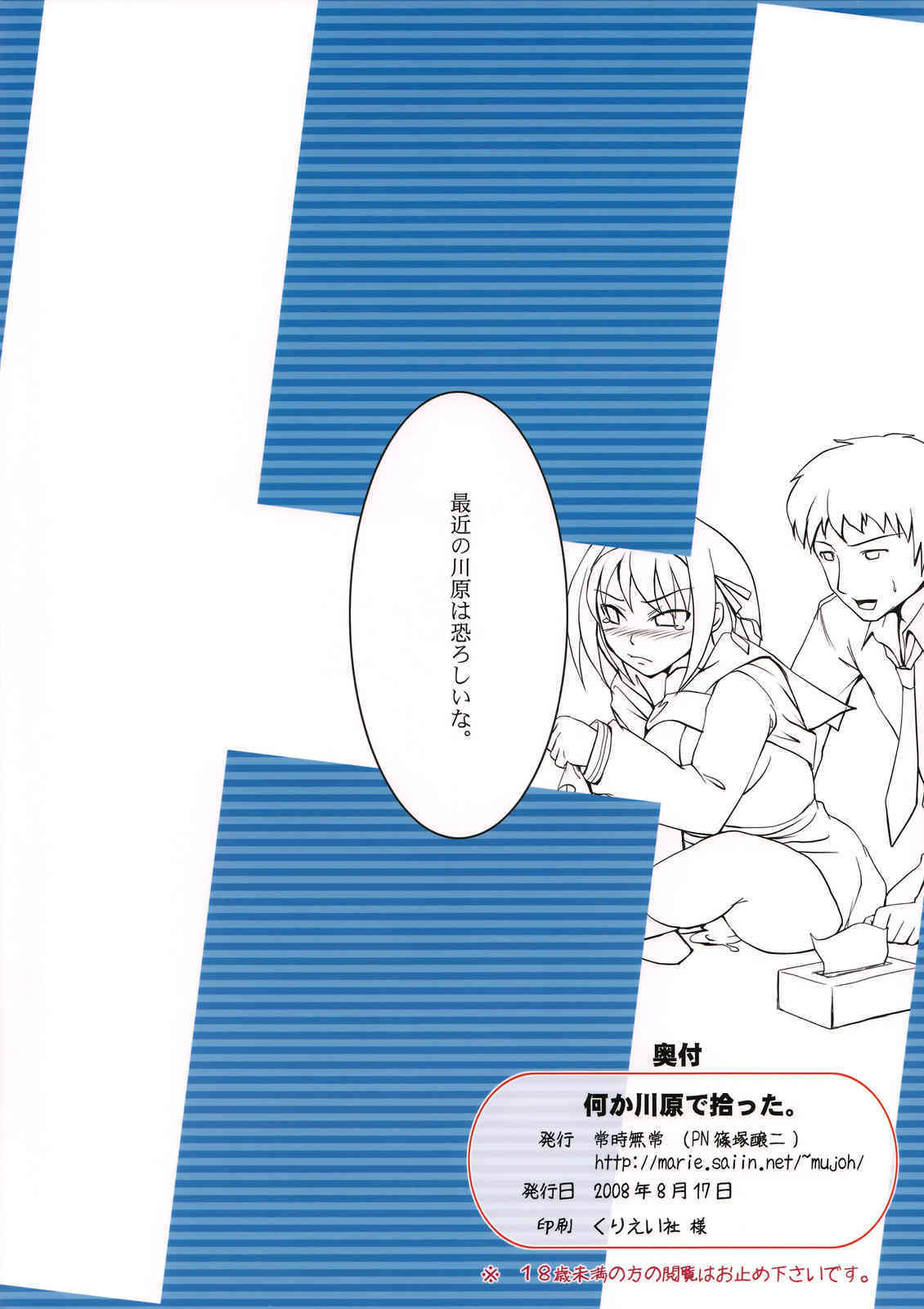 (C74) [常時無常 (篠塚醸二)] 何か川原で拾った。 (涼宮ハルヒの憂鬱) [英訳]