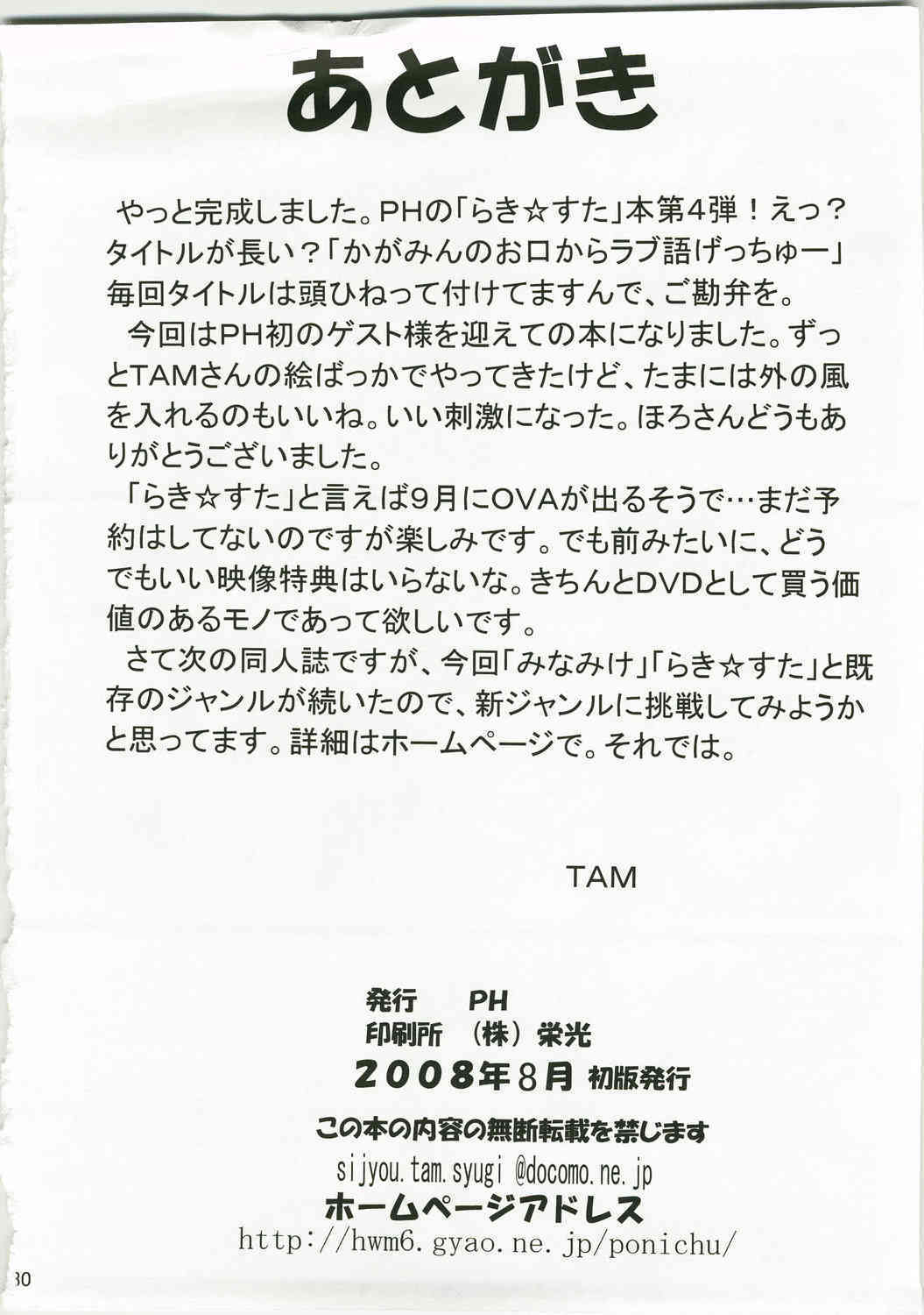 (C74) (同人誌) [PH] かがみんのお口からラブ語げっちゅー (らき☆すた)Report (C74) [PH] Kagamin No O Kuchi Kara Rabu Go Gecchi (Lucky Star)