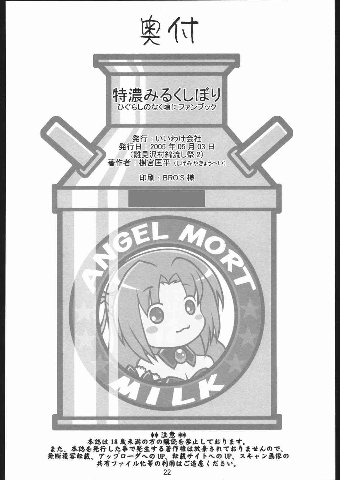 [いいわけ会社 (樹宮匡平)] 特濃みるくしぼり (ひぐらしのなく頃に) [C68広告]Report [IIWAKE-GAISYA (Shigemiya Kyouhei)] Tokunou Milk Shibori (Higurashi no naku koro ni [When They Cry - Higurashi]) [C68 Ad]