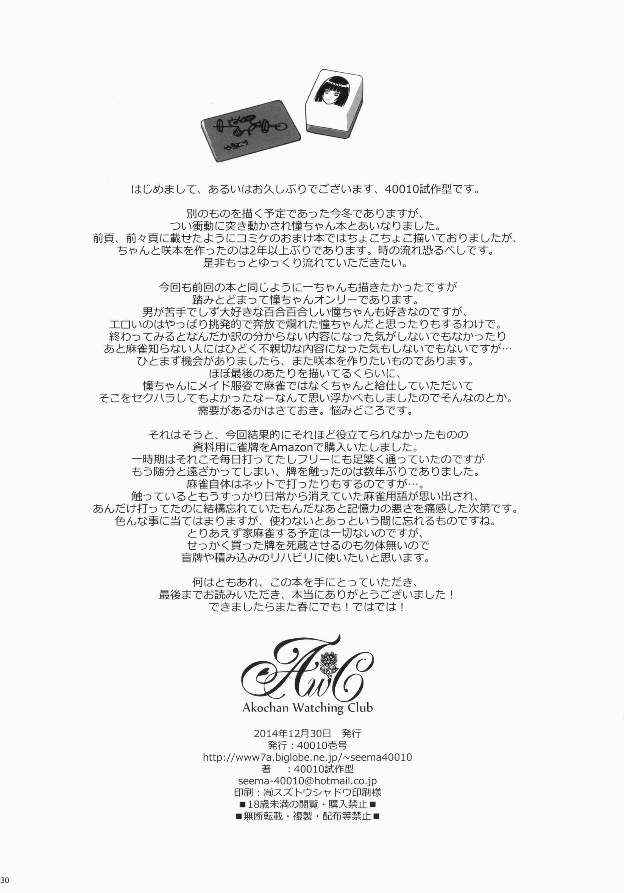 (C87) [40010壱号 (40010試作型)] Akochan Watching Club (咲 -Saki-)