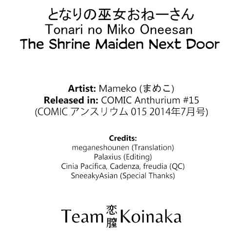 [まめこ] となりの巫女おねーさん (COMIC アンスリウム 015 2014年7月号) [英訳]Report [Mameko] Tonari no Miko Oneesan (COMIC Anthurium 015 2014-07) [English] [Team Koinaka]