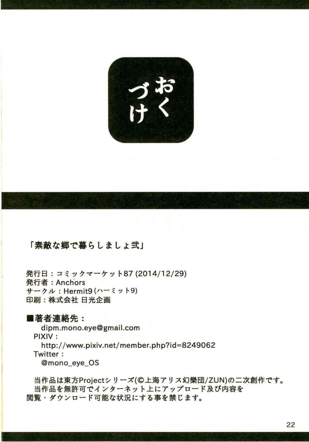 (C87) [ハーミット9 (Anchors)] 素敵な郷で暮らしましょ 弐 (東方Project) [英訳]Report (C87) [Hermit9 (Anchors)] Suteki na Sato de Kurashimasho Ni | Let's Go Live in a Wonderful Village 2 (Touhou Project) [English] [desudesu]