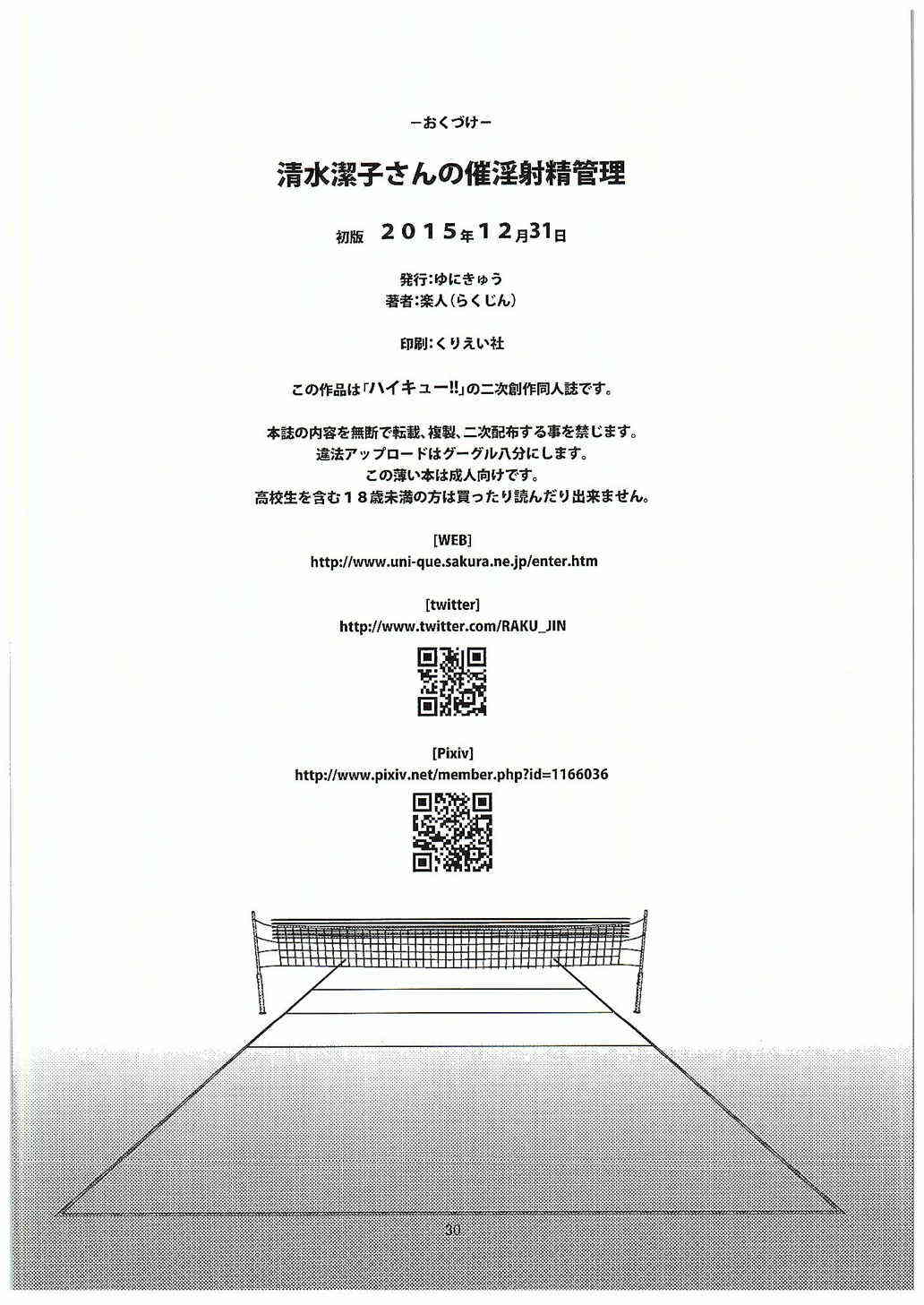 (C89) [ゆにきゅう (楽人)] 清水潔子さんの催淫射精管理 (ハイキュー!!)Report (C89) [UNIQUE (Rakujin)] Shimizu Kiyoko-san no Saiin Shasei Kanri (Haikyuu!!)