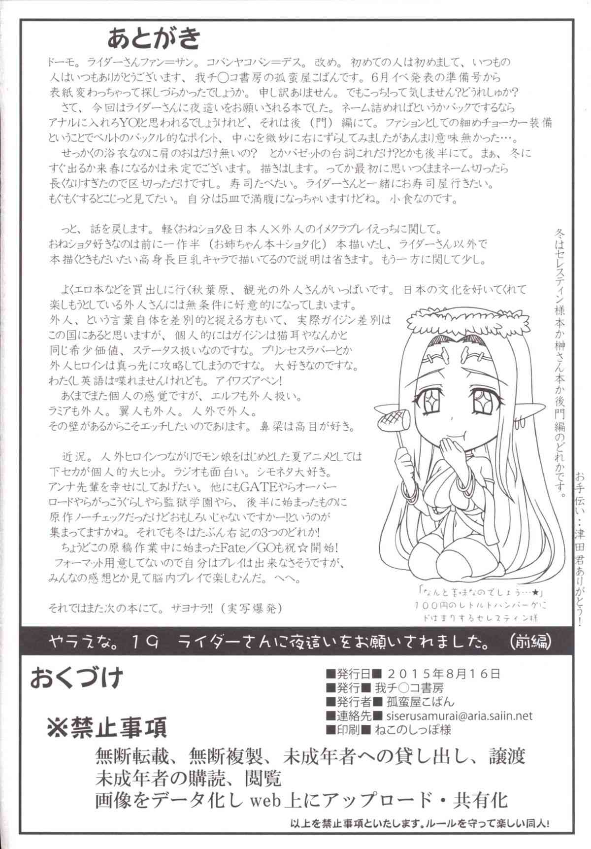 (C88) [我チ○コ書房 (孤蛮屋こばん)] ライダーさんに夜這いをお願いされました。(前編) (Fate/stay night)Report (C88) [Gachinko Shobou (Kobanya Koban)] Rider-san ni Yobai wo Onegai Saremashita. (Zenpen) (Fate/stay night)