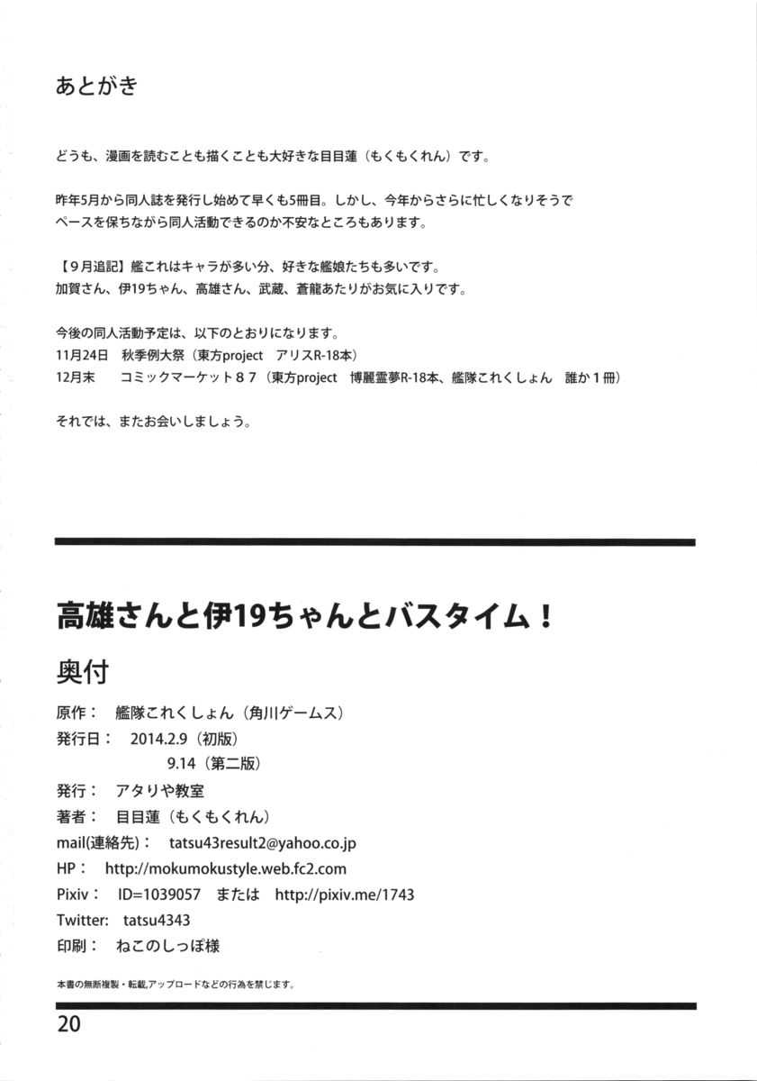 (砲雷撃戦!よーい!&軍令部酒保合同演習弐戦目) [アタりや教室 (目目蓮)] 高雄さんと伊19ちゃんとバスタイム! (艦隊これくしょん -艦これ-)Report (Houraigekisen Yo-i! & Gunreibu Shuho Goudou Enshuu 2Senme) [Atariya Kyoushitsu (Mokumokuren)] Takao-san to I-19-chan to Bath Time! (Kantai Collection -KanColle-)