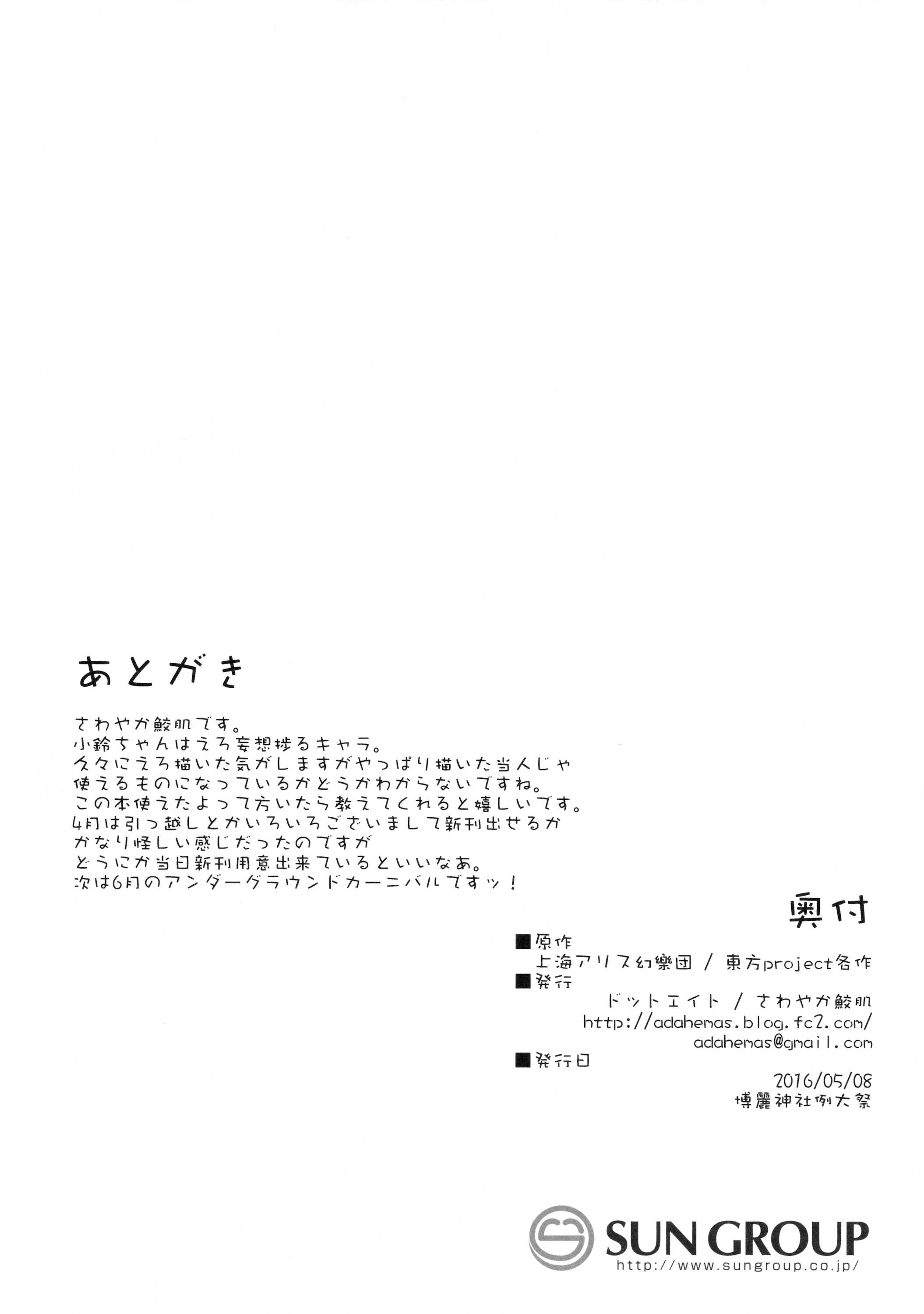 (例大祭13) [ドットエイト (さわやか鮫肌)] 小鈴ちゃんとすけべする本 (東方Project)Report (Reitaisai 13) [Dot Eito (Sawayaka Samehada)] Kosuzu-chan to Sukebe Suru Hon (Touhou Project)