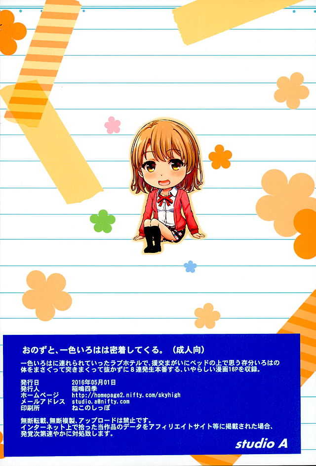 (COMIC1☆10) [studio A (稲鳴四季)] おのずと、一色いろはは密着してくる。 (やはり俺の青春ラブコメはまちがっている。)Report (COMIC1☆10) [studio A (Inanaki Shiki)] Onozuto, Isshiki Iroha wa Micchaku Shitekuru. (Yahari Ore no Seishun Love Come wa Machigatteiru.)
