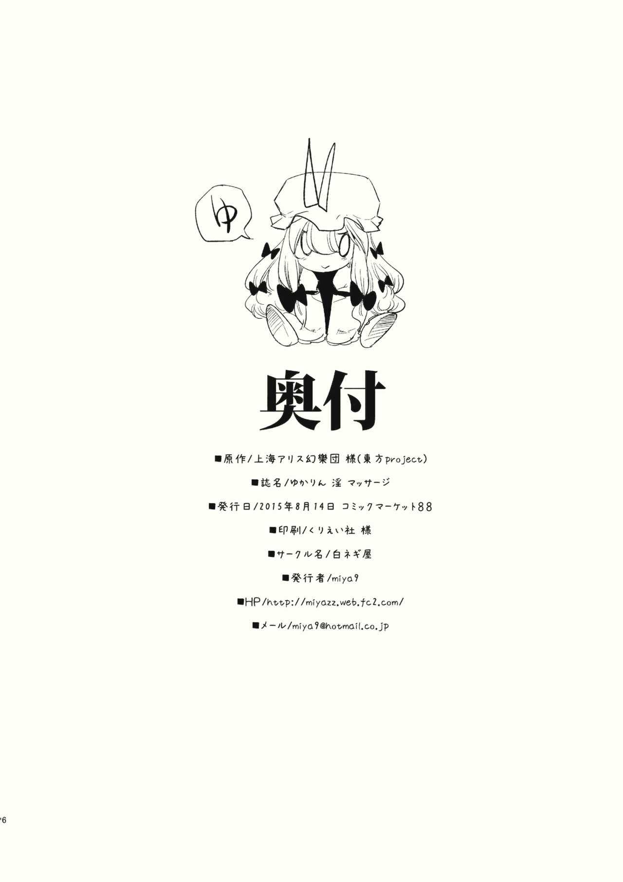 (C88) [白ネギ屋 (miya9)] ゆかりん 淫 マッサージ (東方Project)Report (C88) [Shironegiya (miya9)] Yukarin In Massage (Touhou Project)