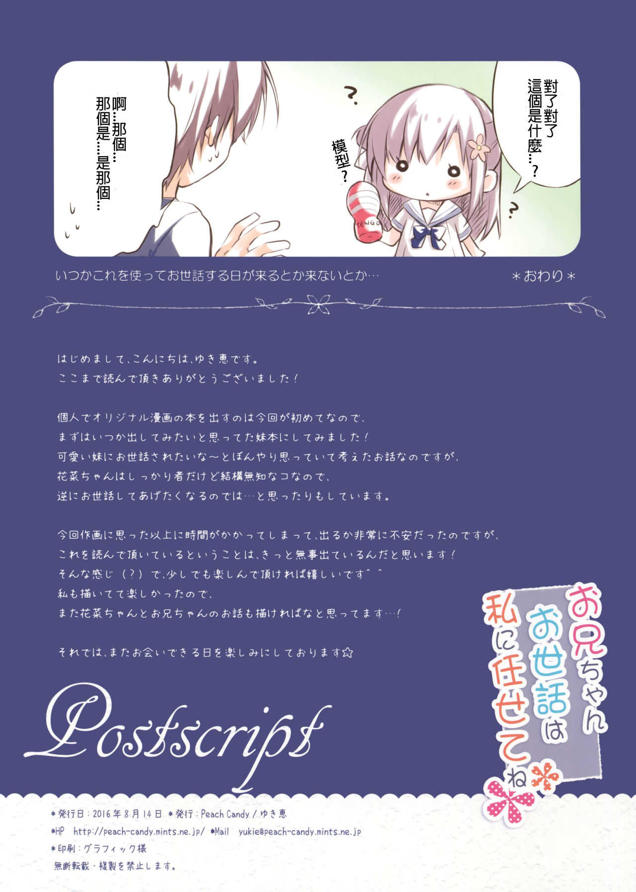 (C90) [Peach Candy (ゆき恵)] お兄ちゃんお世話は私に任せてね [中国翻訳]Report (C90) [Peach Candy (Yukie)] Onii-chan Osewa wa Watashi ni Makasete ne [Chinese] [星野願個人漢化]