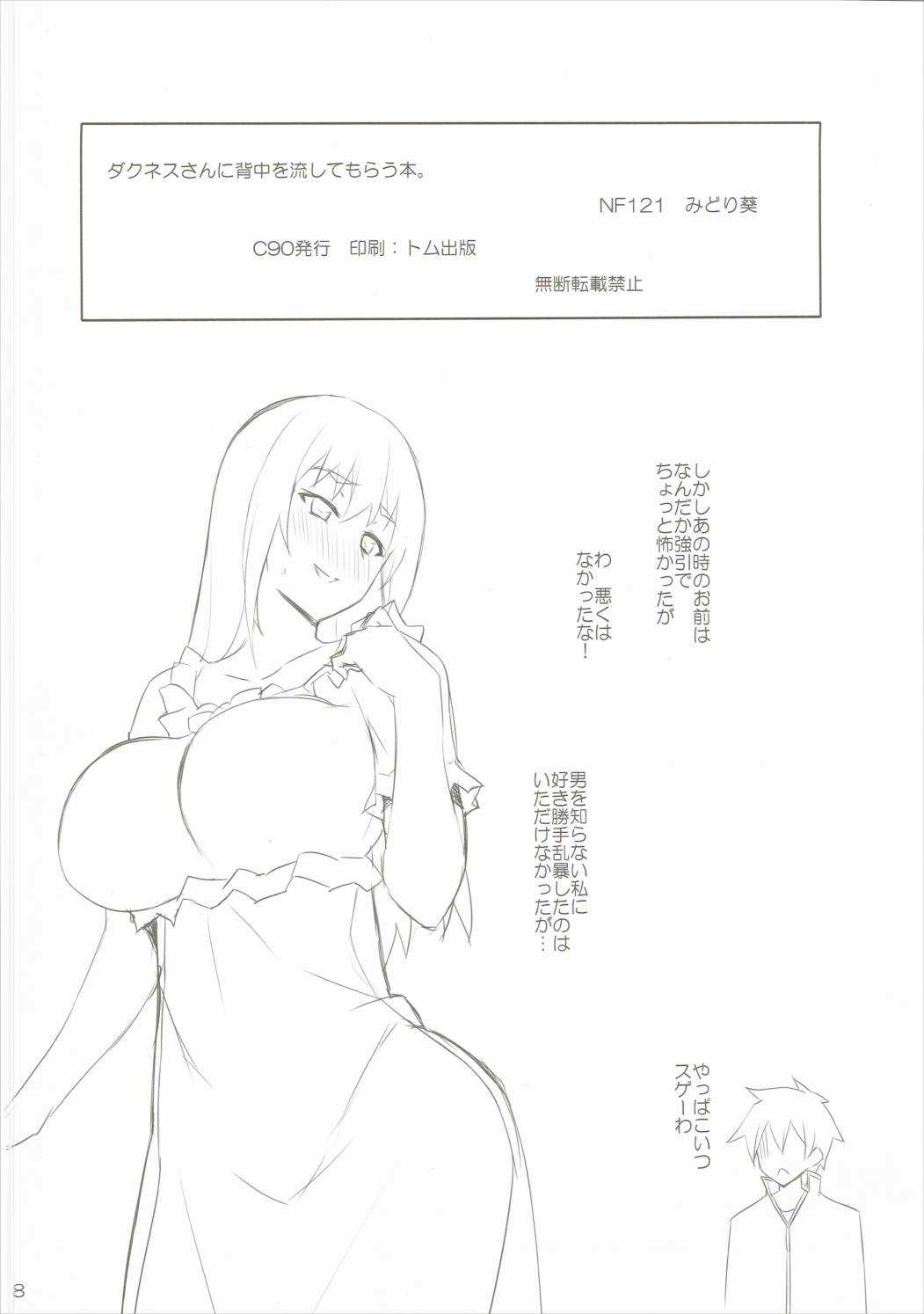 (C90) [NF121 (みどり葵)] ダクネスさんに背中を流してもらう本。 (この素晴らしい世界に祝福を!)Report (C90) [NF121 (Midori Aoi)] Darkness-san ni Senaka o Nagashite morau Hon. (Kono Subarashii Sekai ni Syukufuku o!)