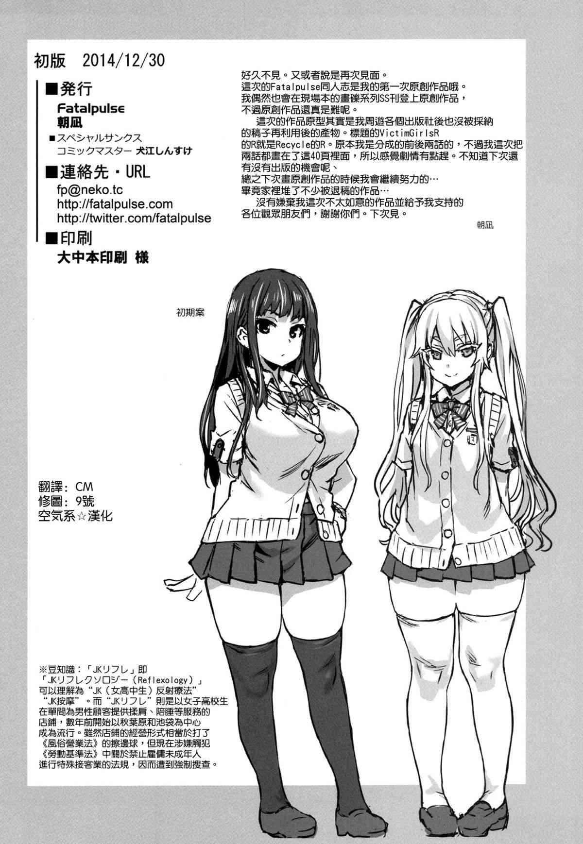 (C87) [Fatalpulse (朝凪)] VictimGirlsR "JK de リフレ-Flesh & Refresh-" [中国翻訳]Report (C87) [Fatalpulse (Asanagi)] VictimGirlsR "JK de Refre -Flesh & Refresh-" [Chinese] [空気系☆漢化]