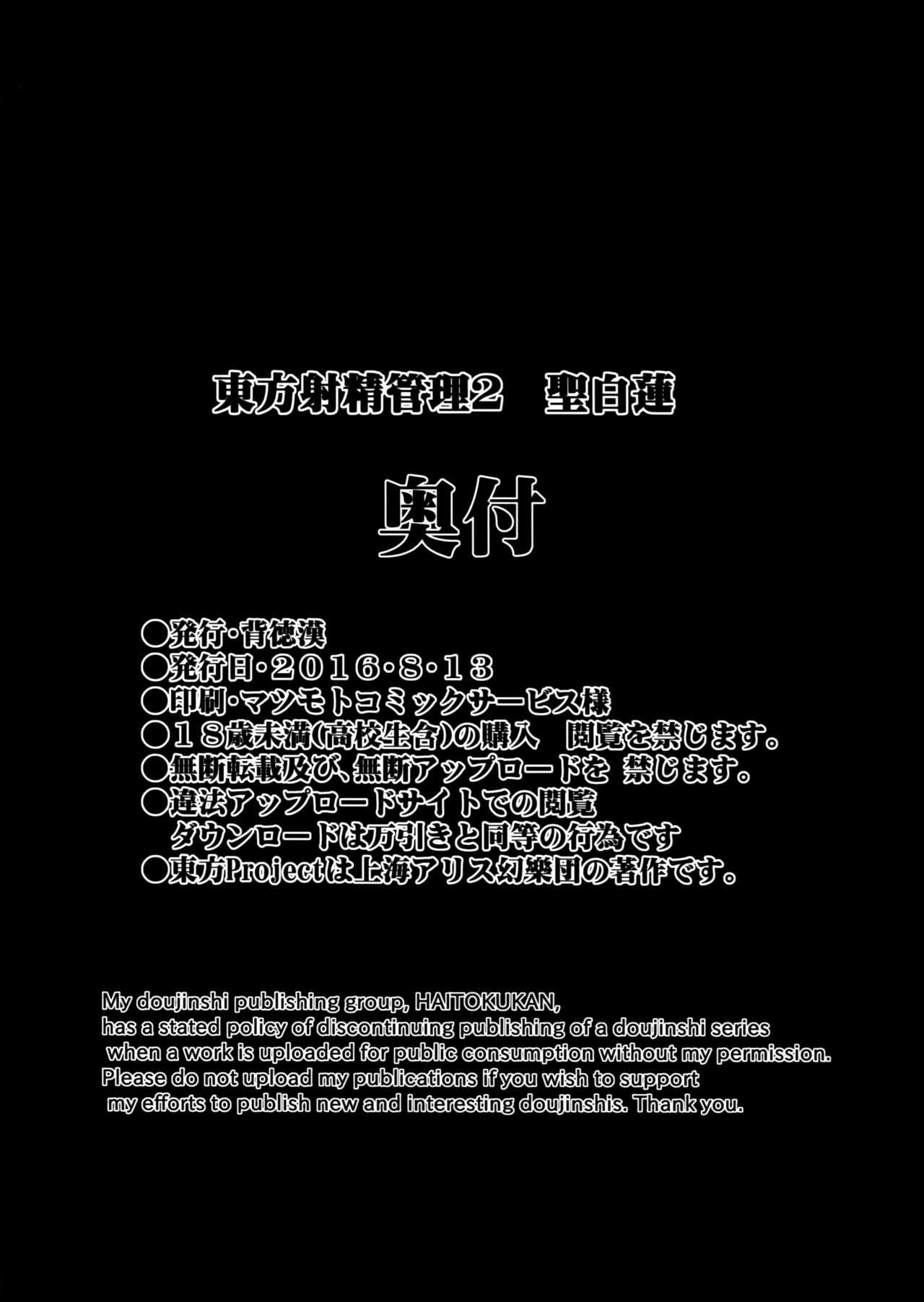 (C90) [背德漢] 東方射精管理2 聖白蓮 (東方Project) [中国翻訳]Report (C90) [Haitokukan] Touhou Shasei Kanri 2 Hijiri Byakuren (Touhou Project) [Chinese] [Kanade汉化组]