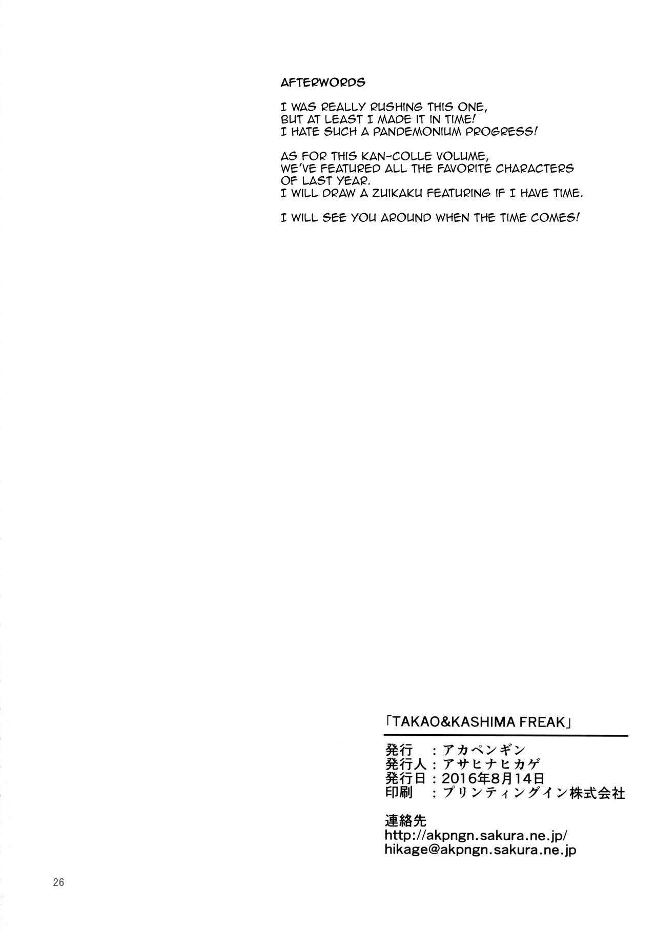 (C90) [アカペンギン (アサヒナヒカゲ)] TAKAO & KASHIMA FREAK (艦隊これくしょん-艦これ-) [英訳]Report (C90) [Akapenguin (Asahina Hikage)] TAKAO & KASHIMA FREAK (Kantai Collection -KanColle-) [English] [cc0dykid]