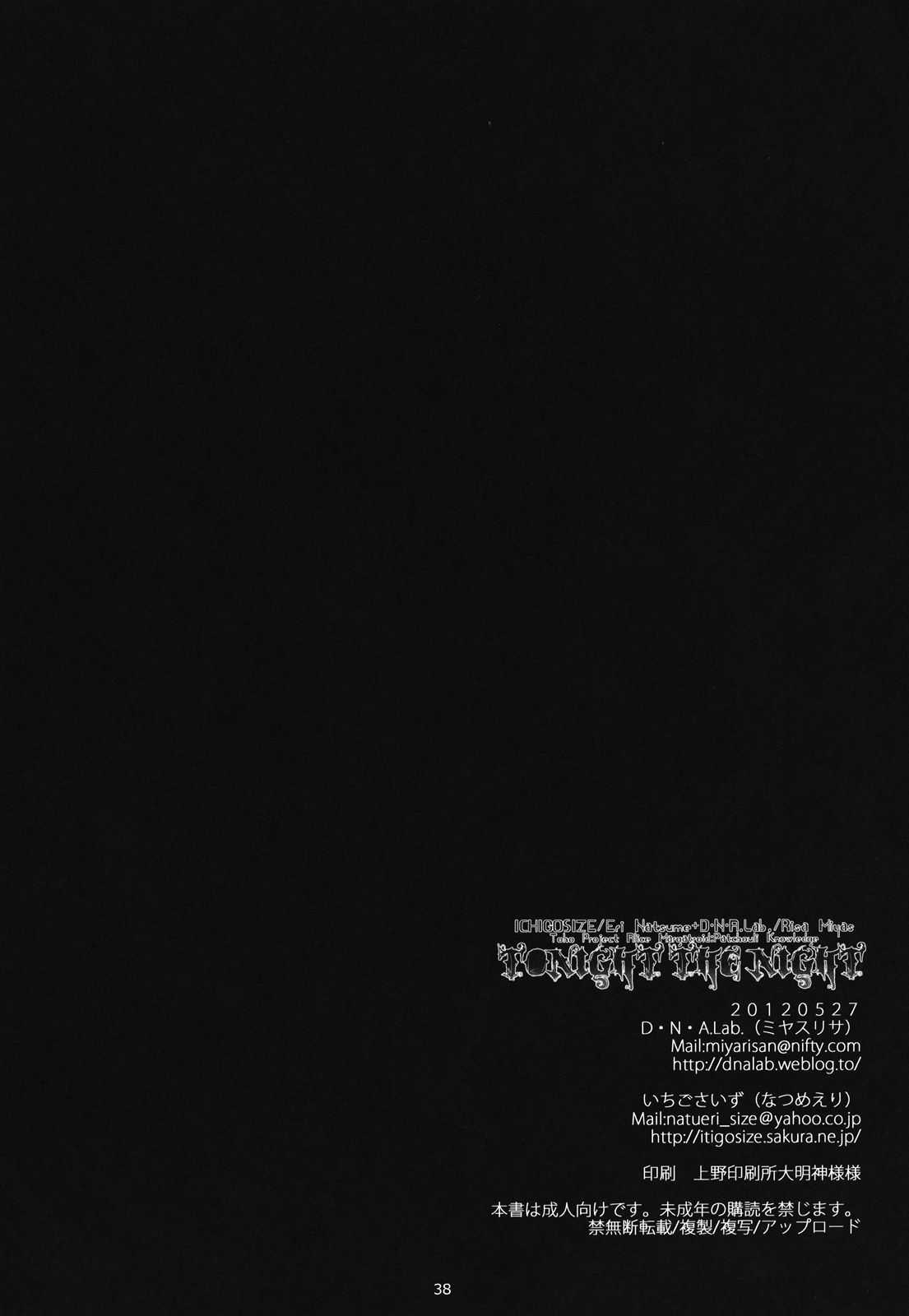 (例大祭9) [D・N・A.Lab.、いちごさいず (ミヤスリサ、なつめえり)] Tonight The Night (東方Project) [英訳]