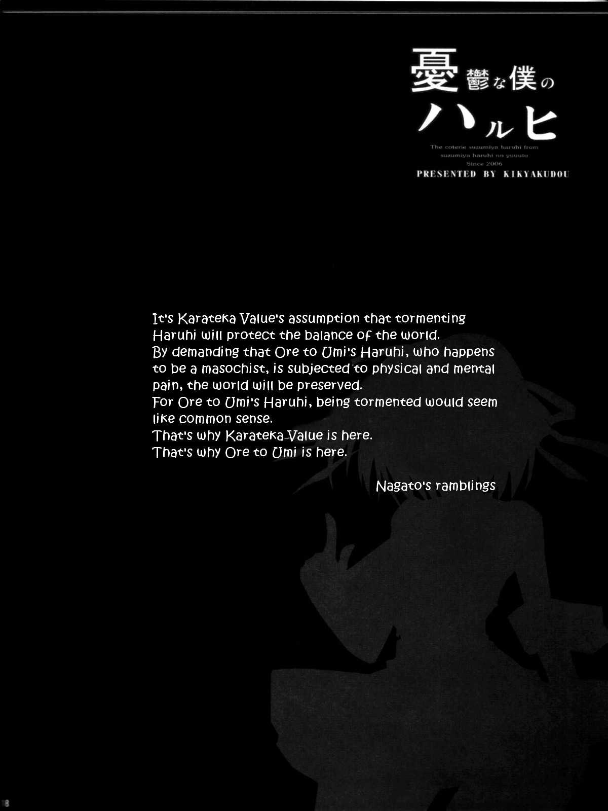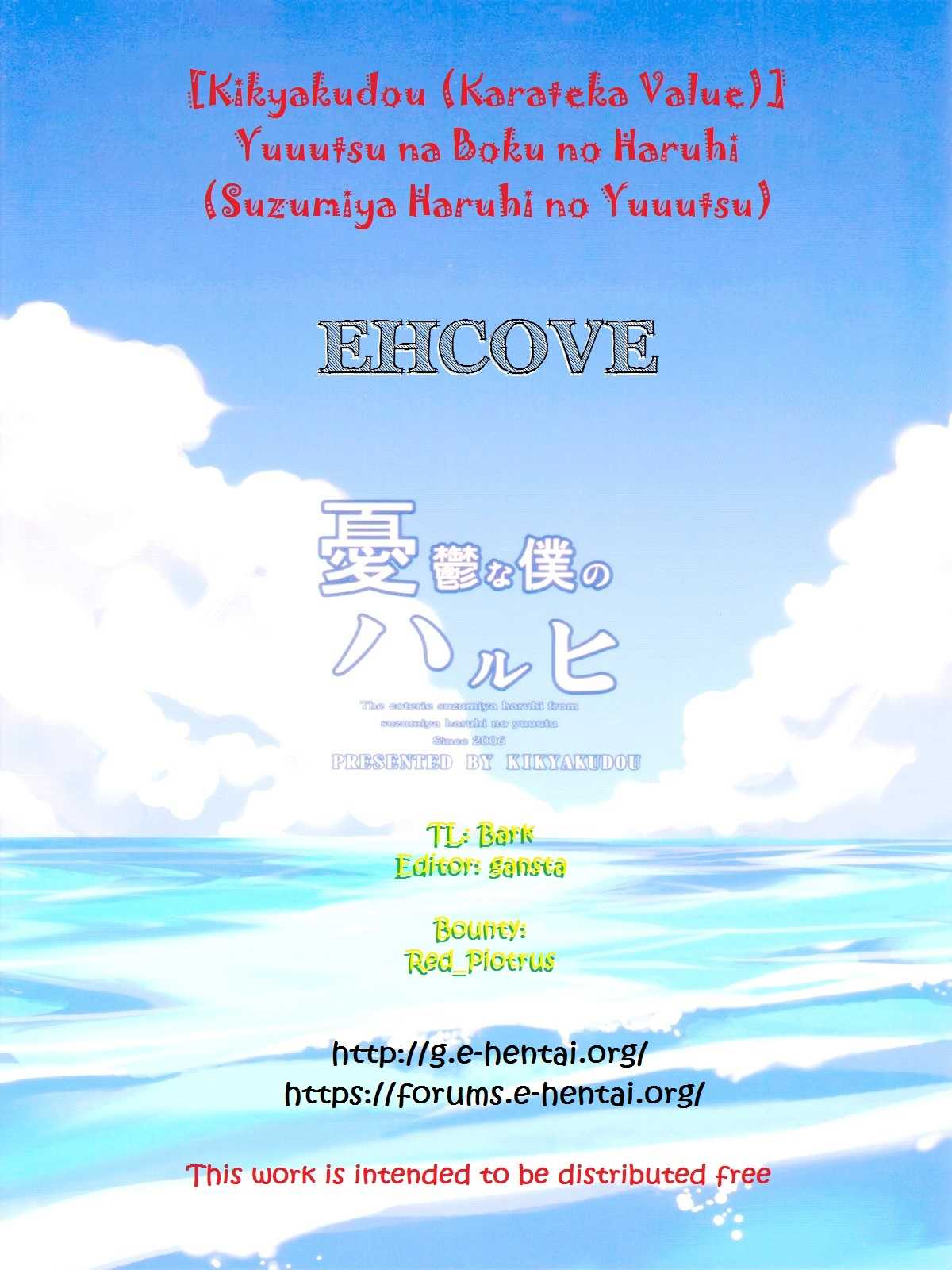 (C70) [鬼脚堂 (カラテカ・バリュー)] 憂鬱なボクのハルヒ (涼宮ハルヒの憂鬱) [英訳] [無修正]Report (C70) [Kikyakudou (Karateka Value)] Yuuutsu na Boku no Haruhi (Suzumiya Haruhi no Yuuutsu) [English] [EHCOVE] [Decensored]