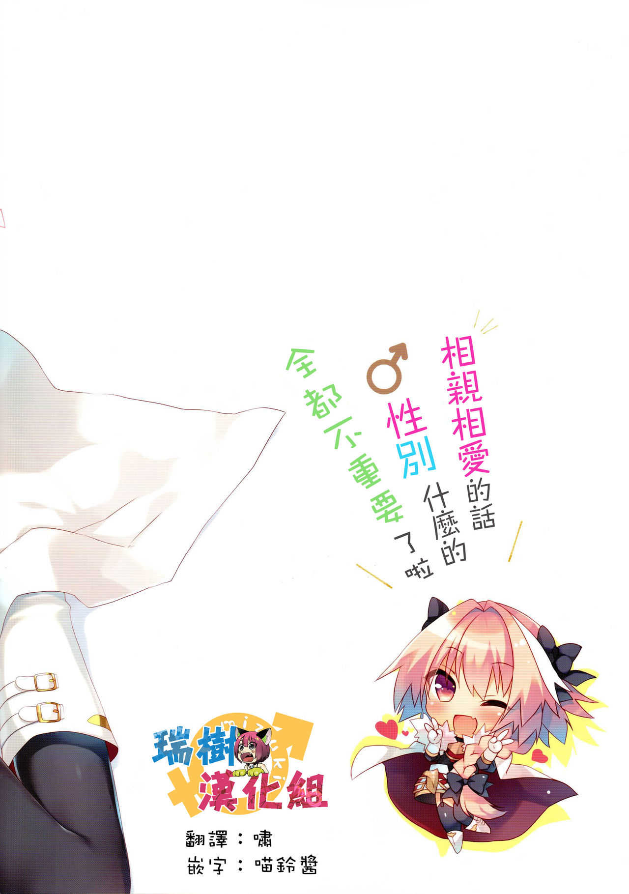(C91) [23.4ド (イチリ)] 両想いなら性別なんて関係ないよねっ (Fate/Grand Order) [中国翻訳]Report (C91) [23.4do (Ichiri)] Ryouomoi nara Seibetsu Nante Kankeinai yo ne (Fate/Grand Order) [Chinese] [瑞树汉化组]
