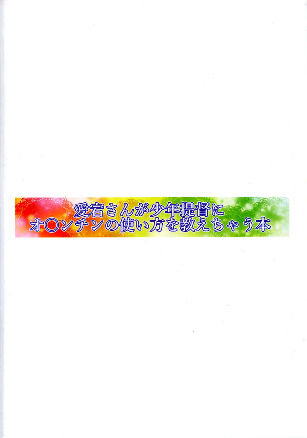 (C91) [牧野駅 (牧野坂シンイチ)] 愛宕さんが少年提督にオ○ンチンの使い方を教えちゃう本 (艦隊これくしょん -艦これ-)Report (C91) [Makino Eki (Makinosaka Shinichi)] Atago-san ga Shounen Teitoku ni Ochinchin no Tsukaikata o Oshiechau Hon (Kantai Collection -KanColle-)