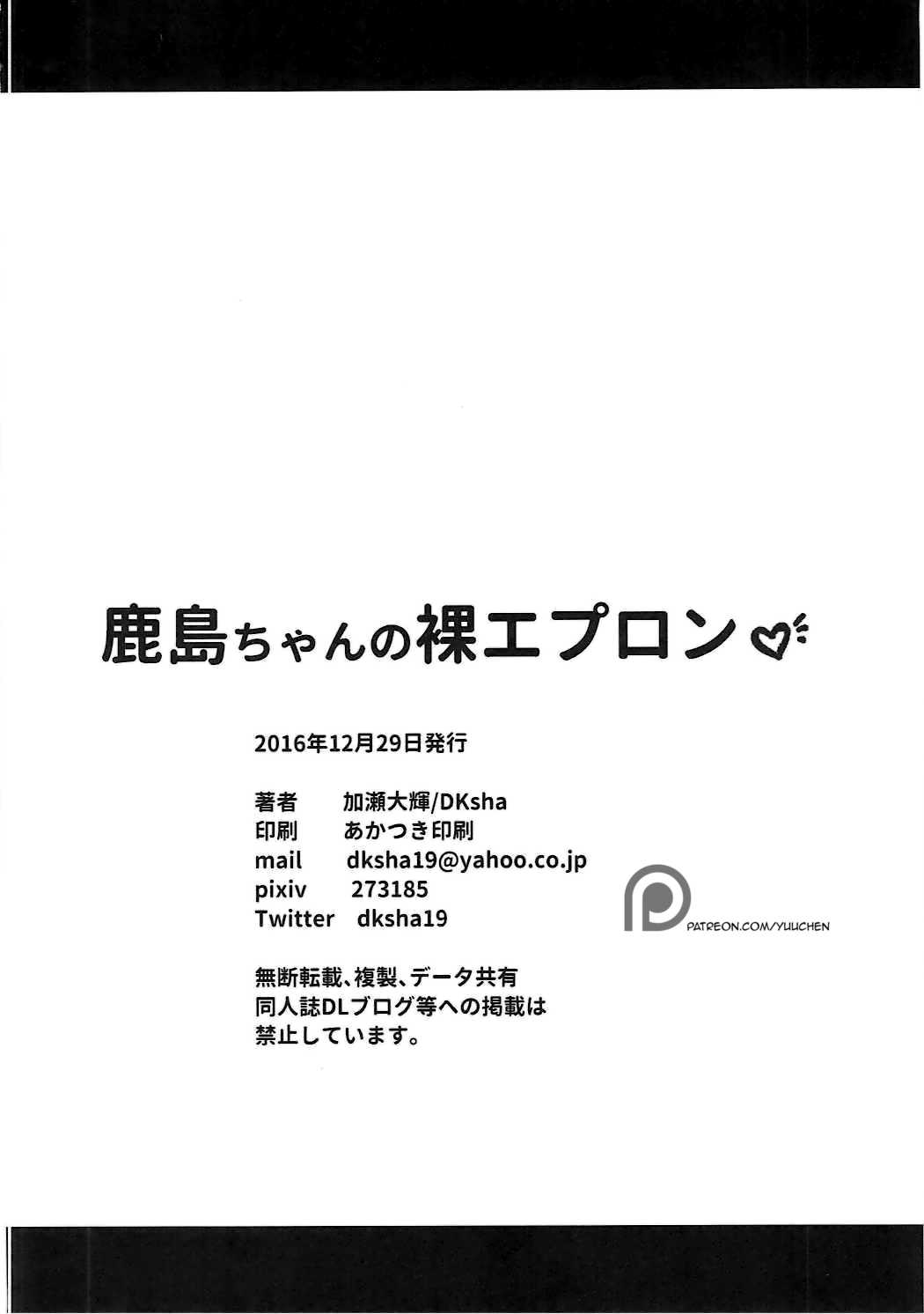 (C91) [DKsha (加瀬大輝)] 鹿島ちゃんの裸エプロン (艦隊これくしょん -艦これ-) [英訳]Report (C91) [DKsha (Kase Daiki)] Kashima-chan no Hadaka Apron (Kantai Collection -KanColle-) [English] [Yuuchen]