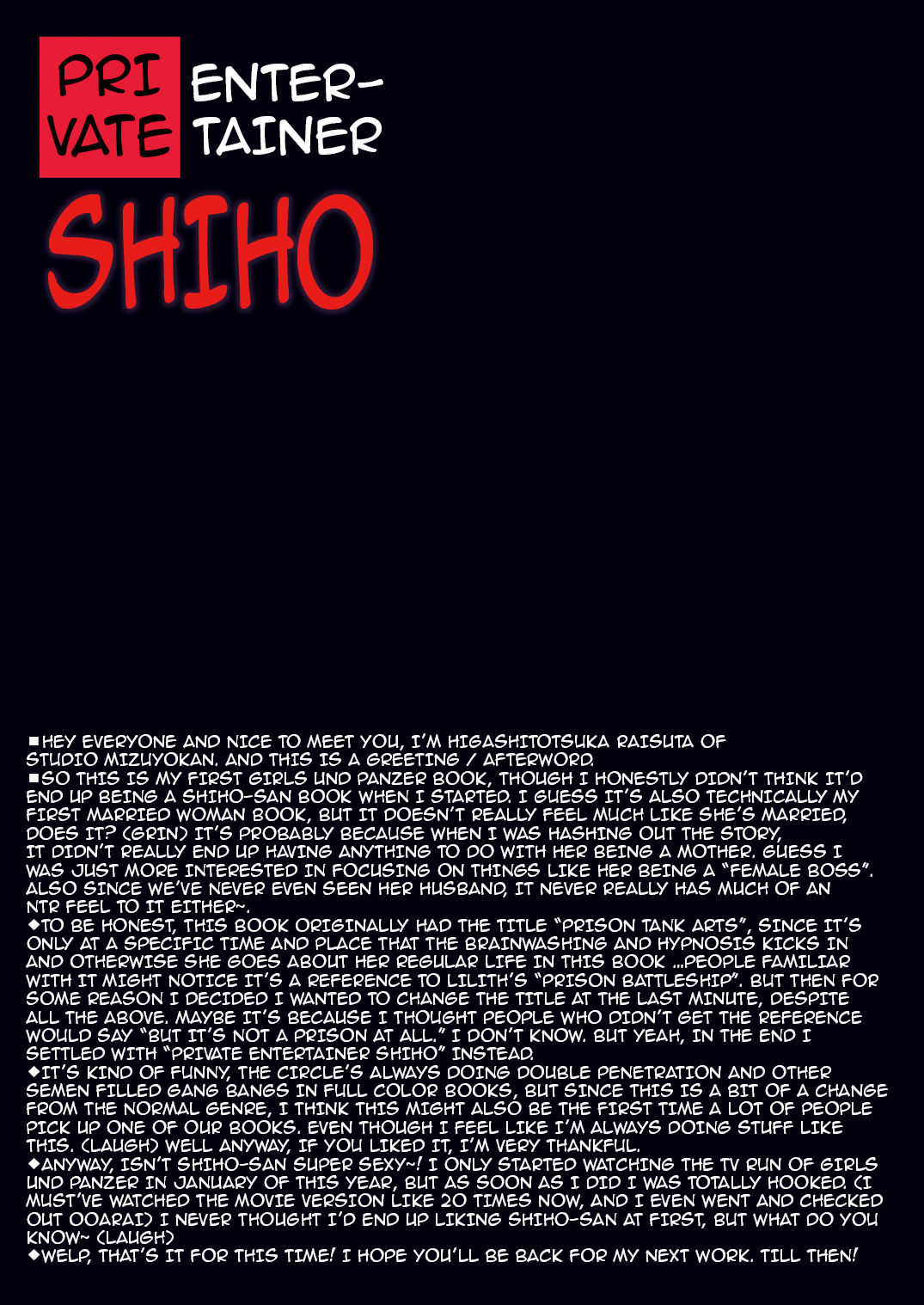 [スタジオみずよーかん (東戸塚らいすた)] 裏接待しほ (ガールズ&パンツァー) [英訳] [DL版]Report [Studio Mizuyokan (Higashitotsuka Raisuta)] Ura Settai Shiho | Private Entertainer Shiho (Girls und Panzer) [English] {darknight} [Digital]