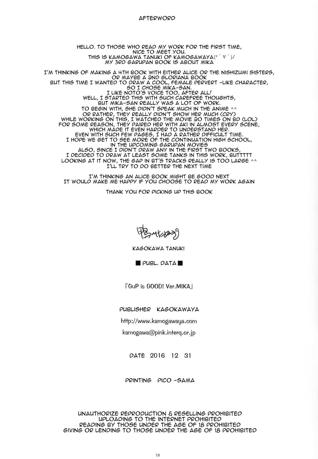 (C91) [鴨川屋 (鴨川たぬき)] GuP is good! ver.MIKA (ガールズ&パンツァー) [英訳]
