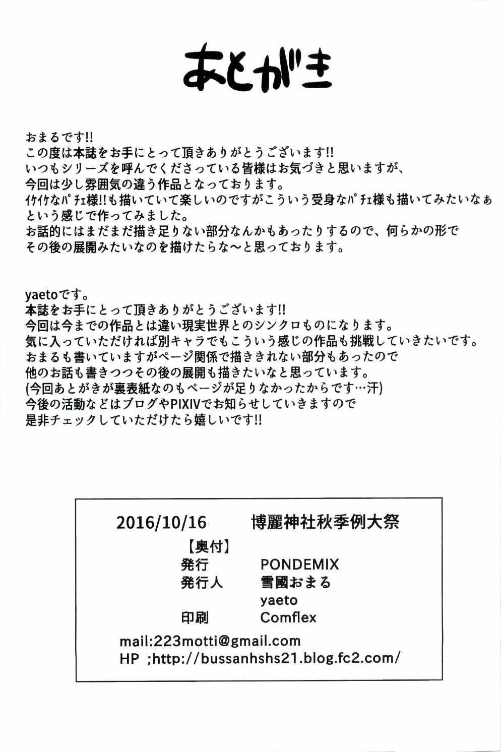 (秋季例大祭3) [PONDEMIX (雪國おまる)] TOHO-MIX -patchouli- (東方Project)Report (Shuuki Reitaisai 3) [PONDEMIX (Yukiguni Omaru)] TOHO-MIX -patchouli- (Touhou Project)