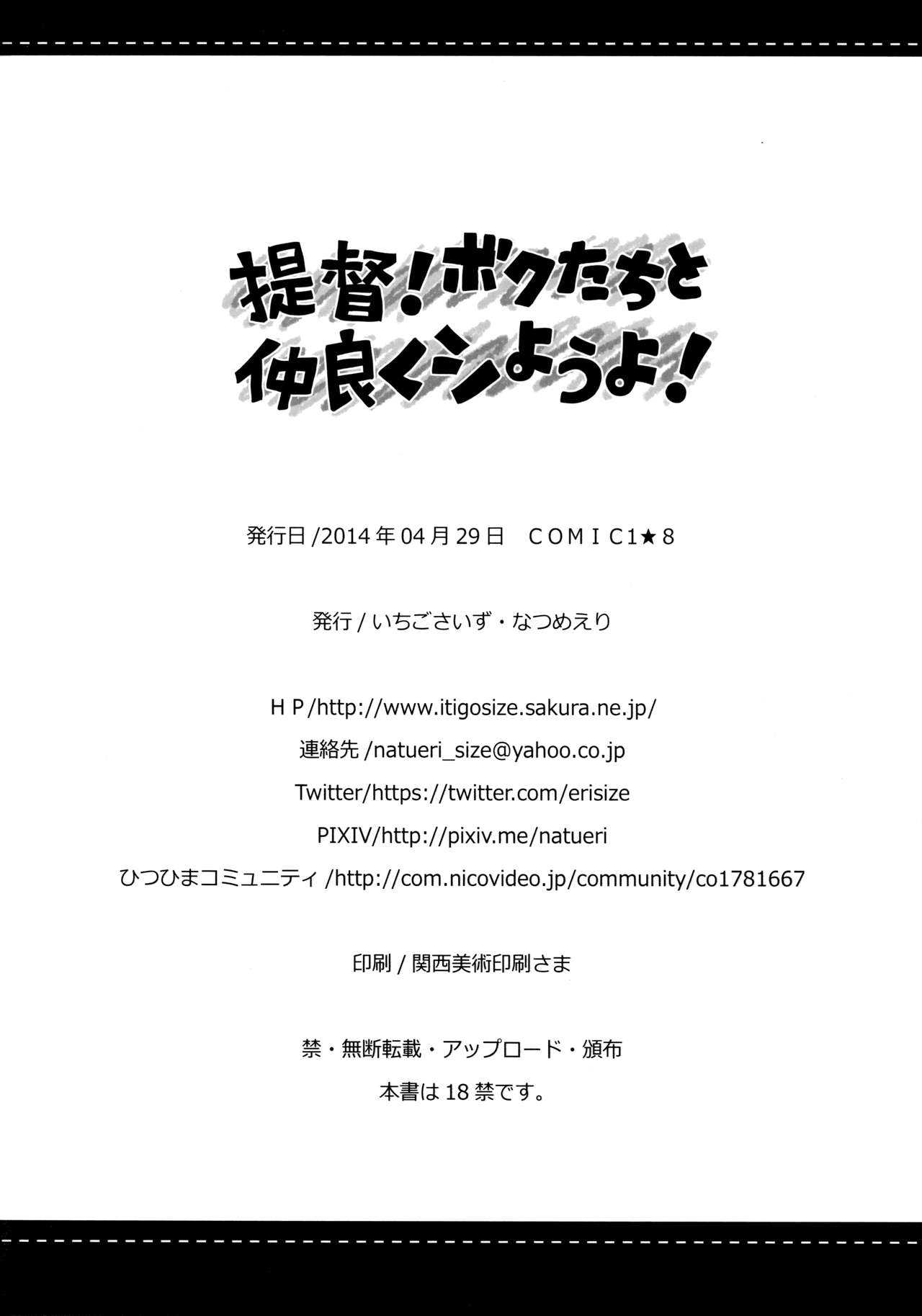(COMIC1☆8) [いちごさいず (なつめえり)] 提督!ボクたちと仲良くシようよ! (艦隊これくしょん -艦これ-) [英訳]Report (COMIC1☆8) [Ichigosize (Natsume Eri)] Teitoku! Bokutachi To Nakayoku Shiyou Yo! | Admiral! Let's "Get Along"! (Kantai Collection -KanColle-) [English] [L-san]