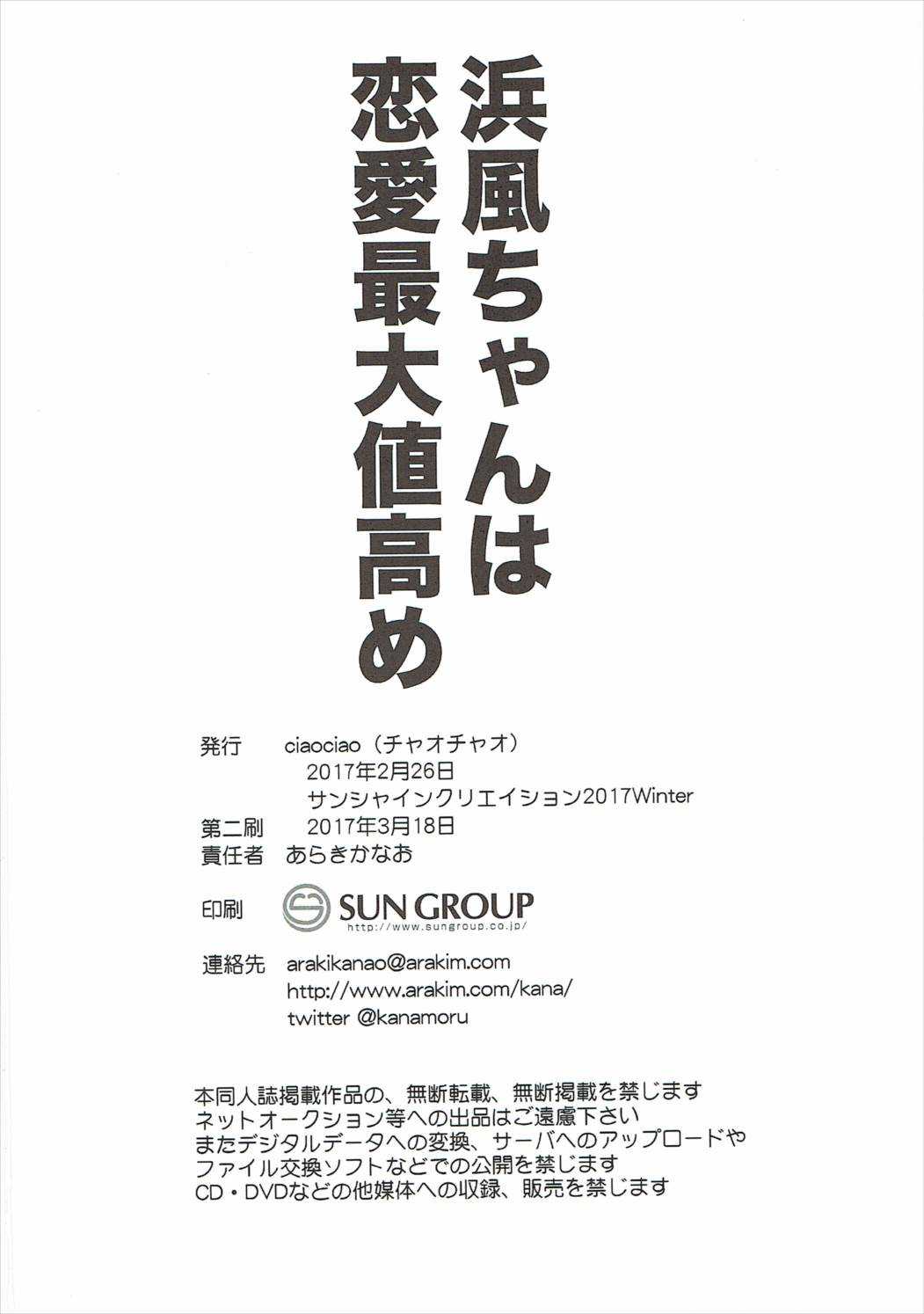 (サンクリ2017 Winter) [ciaociao (あらきかなお)] 浜風ちゃんは恋愛最大値高め (艦隊これくしょん -艦これ-)Report (SC2017 Winter) [ciaociao (Araki Kanao)] Hamakaze-chan wa Renai Saidaichi Takame (Kantai Collection -KanColle-)