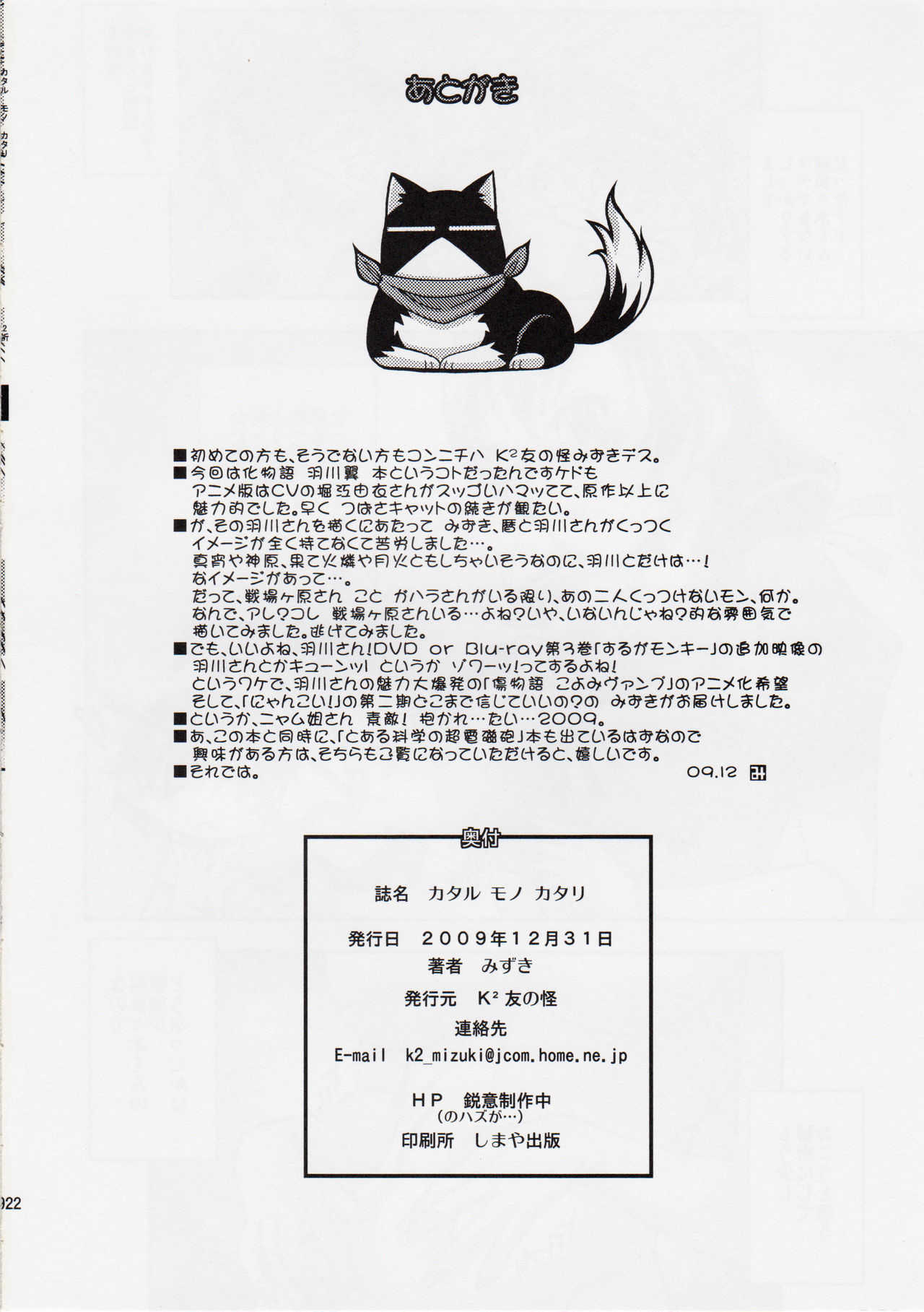 (C77) [K2友の怪 (みずき)] カタルモノカタリ (化物語)Report (C77) [K2 Tomo no Kai (Mizuki)] Katarumonokatari (Bakemonogatari)