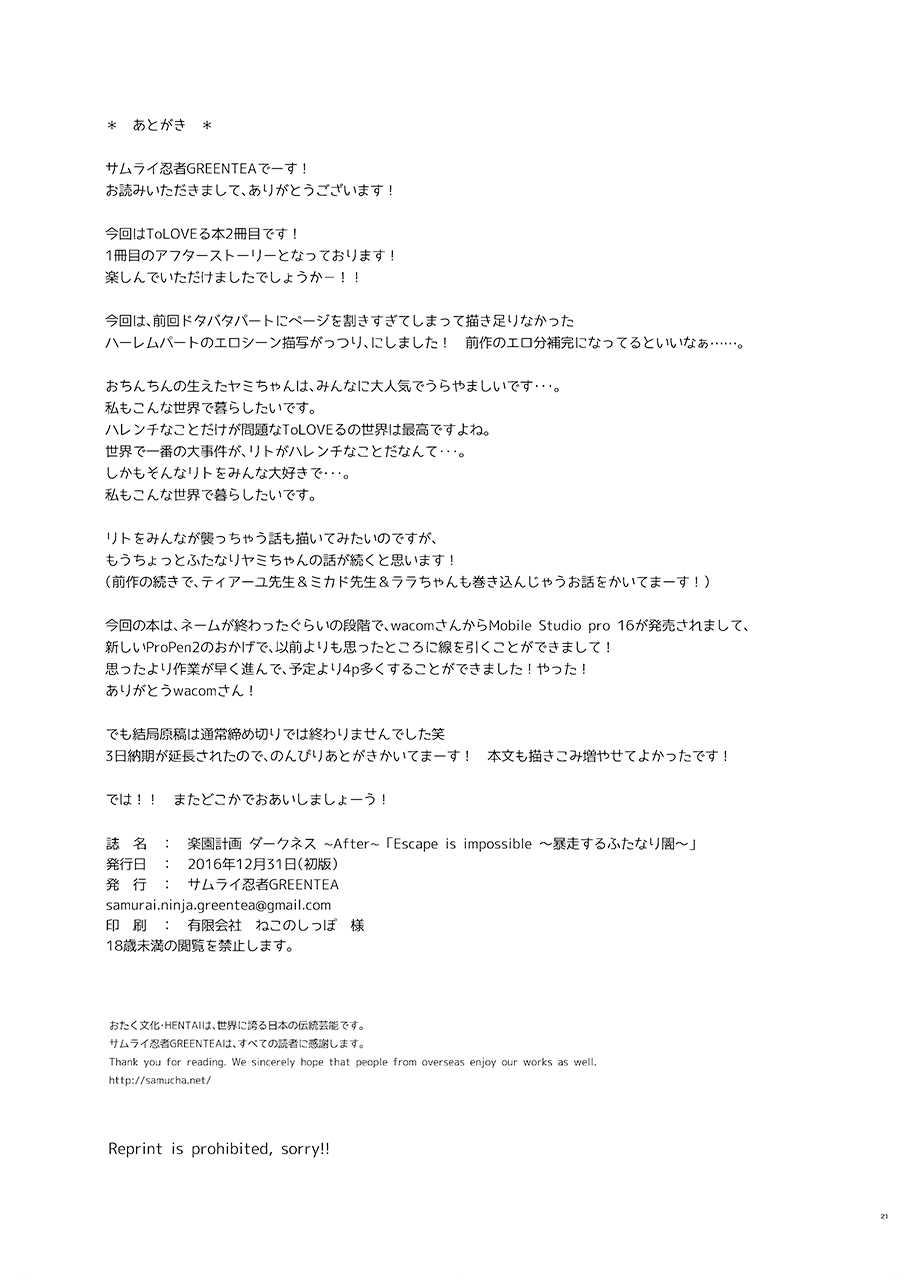 [サムライ忍者GREENTEA (サムライ忍者GREENTEA)] 楽園計画ダークネス-after- 「Escape is impossible ~暴走するふたなり闇~」(To LOVEる ダークネス) [DL版]