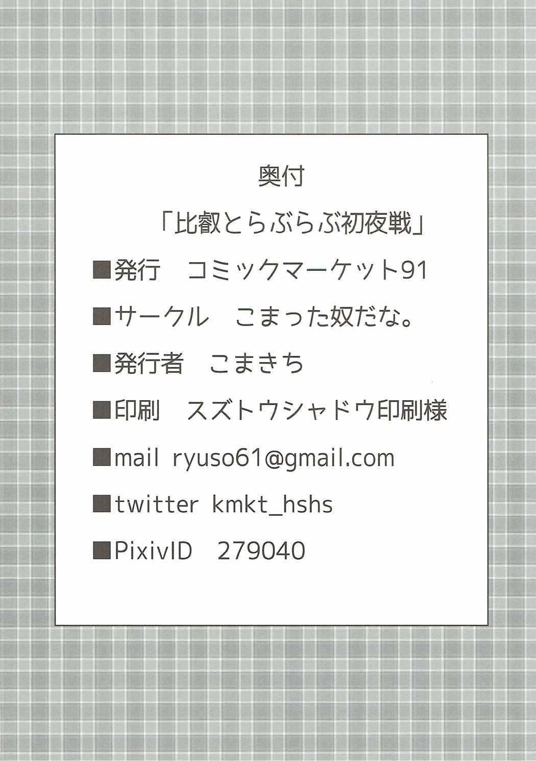 (C91) [こまった奴だな。 (こまきち)] 比叡とらぶらぶ初夜戦 (艦隊これくしょん -艦これ-)Report (C91) [Komatta Yatsu da na. (Komakichi)] Hiei to Love Love Hatsu Yasen (Kantai Collection -KanColle-)