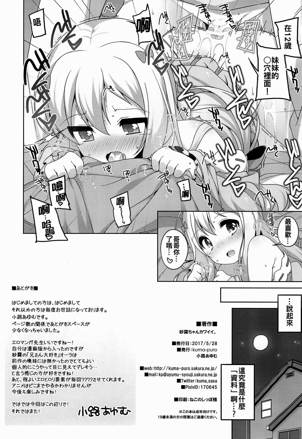 (ぷにケット35) [Kuma-puro (小路あゆむ)] 紗霧ちゃんカワイイ。 (エロマンガ先生) [中国翻訳]Report (Puniket 35) [Kuma-puro (Shouji Ayumu)] Sagiri-chan Kawaii. (Eromanga Sensei) [Chinese] [oo君個人漢化]