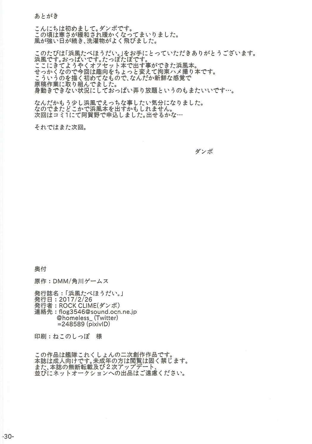 (サンクリ2017 Winter) [ROCK CLIME (ダンボ)] 浜風たべほうだい。 (艦隊これくしょん -艦これ-)Report (SC2017 Winter) [ROCK CLIME (Danbo)] Hamakaze Tabehoudai. (Kantai Collection -KanColle-)