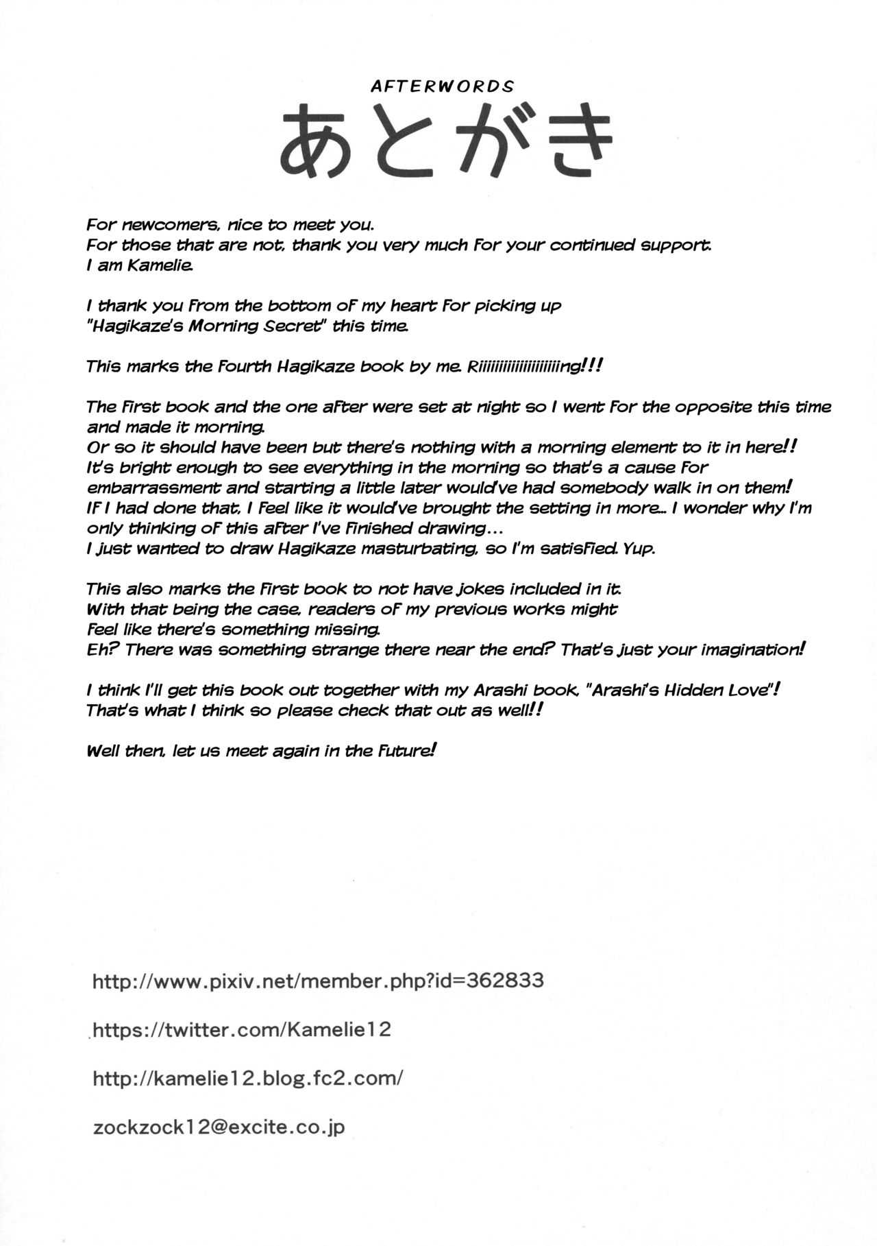 (砲雷撃戦!よーい!二十九戦目) [L5EX (カメーリエ)] 萩風と朝のヒメゴト (艦隊これくしょん -艦これ-) [英訳]Report (Houraigekisen! Yo-i! 29Senme) [L5EX (Kamelie)] Hagikaze to Asa no Himegoto | Hagikaze's Morning Secret (Kantai Collection -KanColle-) [English]