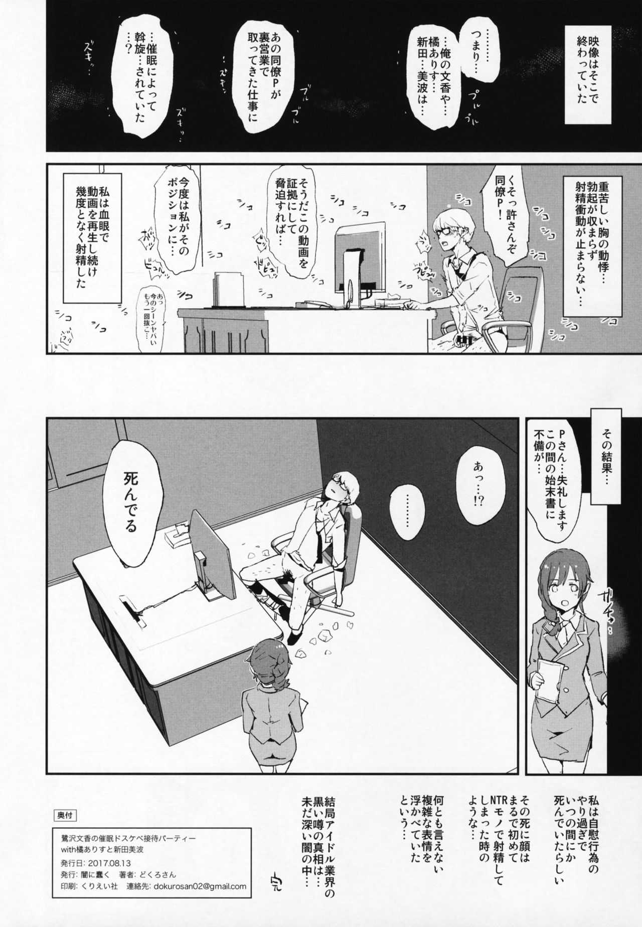 (C92) [闇に蠢く (どくろさん)] 鷺沢文香の催眠ドスケベ接待パーティーwith橘ありすと新田美波 + おまけペーパー (アイドルマスター シンデレラガールズ)Report (C92) [Yami ni Ugomeku (Dokurosan)] Sagisawa Fumika no Saimin Dosukebe Settai Party with Tachibana Arisu to Nitta Minami + Omake Paper (THE IDOLM@STER CINDERELLA GIRLS)