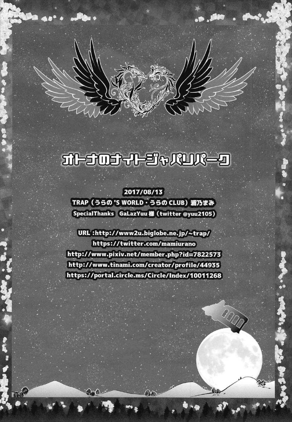 (C92) [TRAP (浦乃まみ)] オトナのナイトジャパリパーク (けものフレンズ)Report (C92) [TRAP (Urano Mami)] Otona no Night Japari Park (Kemono Friends)