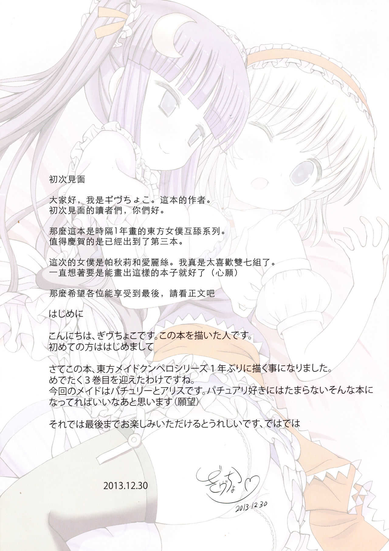 (C85) [難民ふぇすてぃばる (ぎヴちょこ)] 東方メイドクンペロ計画vol.3 パチュリー&アリス (東方Project) [中国翻訳]