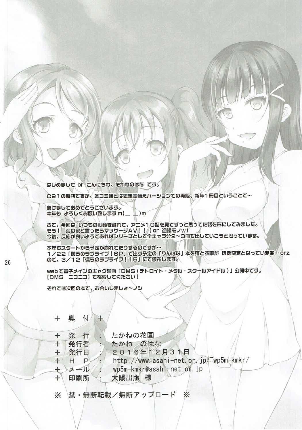 (C91) [たかねの花園 (たかねのはな)] 海の家でアイドルがマッサージ始めました。 (ラブライブ!サンシャイン!!)