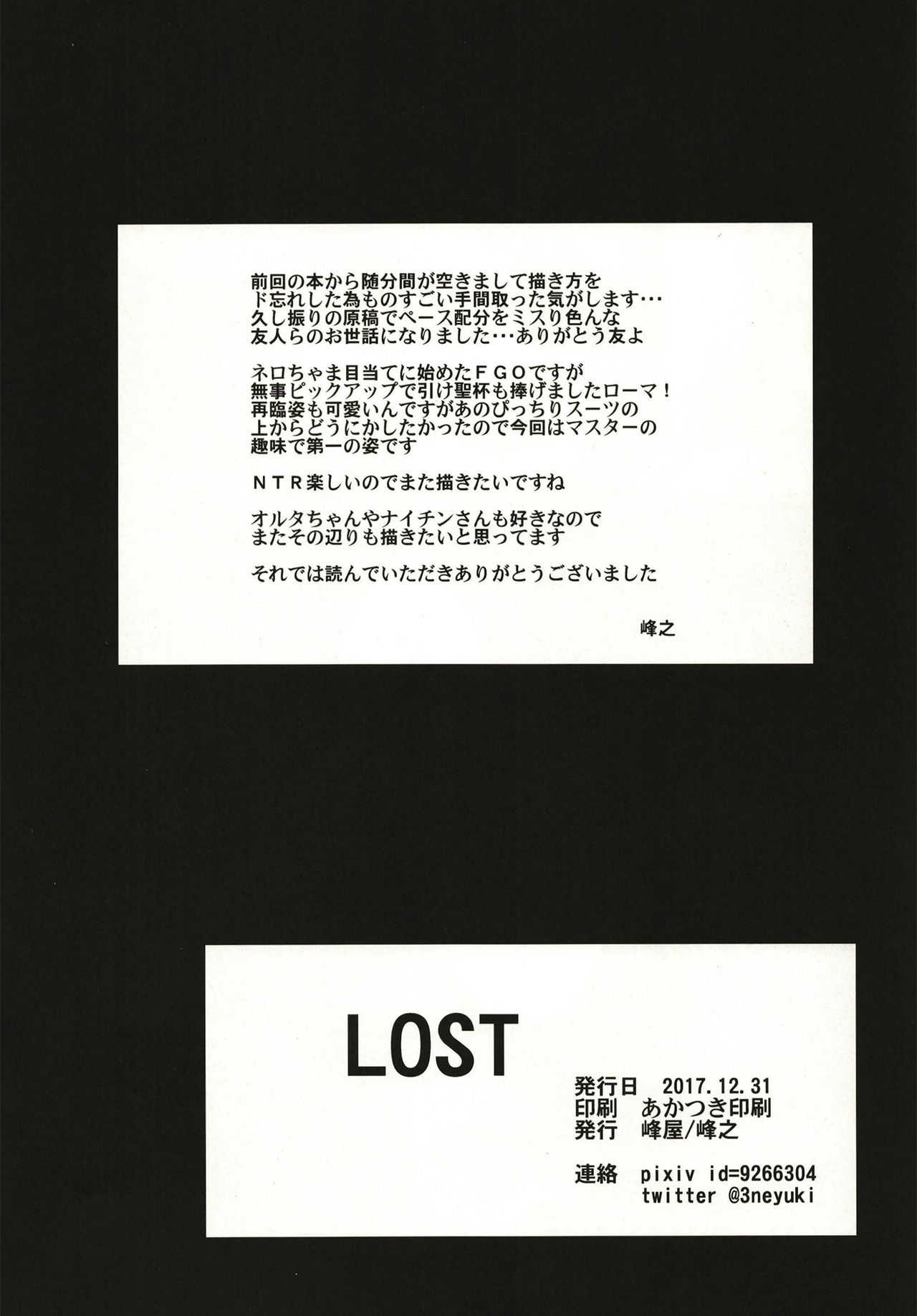 (C93) [峰屋 (峰之)] LOST (Fate/Grand Order)Report (C93) [Mineya (Mineyuki)] LOST (Fate/Grand Order)