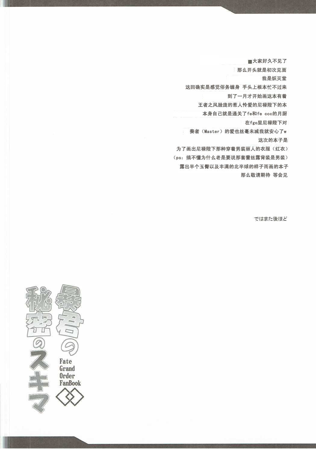 (COMIC1☆11) [妖滅堂 (ヤサカニ・アン)] 暴君の秘密のスキマ (Fate/Grand Order) [中国翻訳]