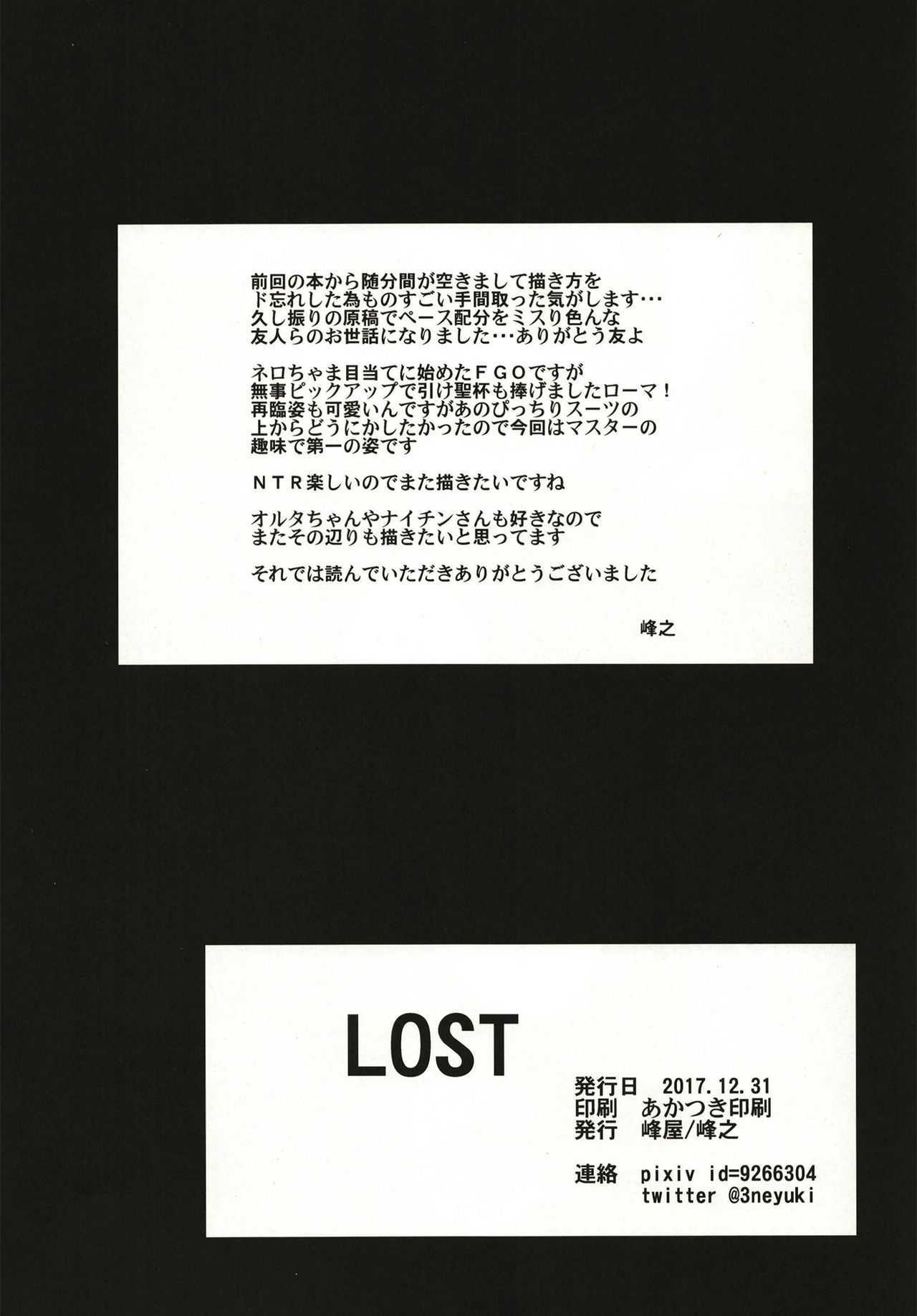 (C93) [峰屋 (峰之)] LOST (Fate/Grand Order) [英訳]Report (C93) [Mineya (Mineyuki)] LOST (Fate/Grand Order) [English] {doujins.com}