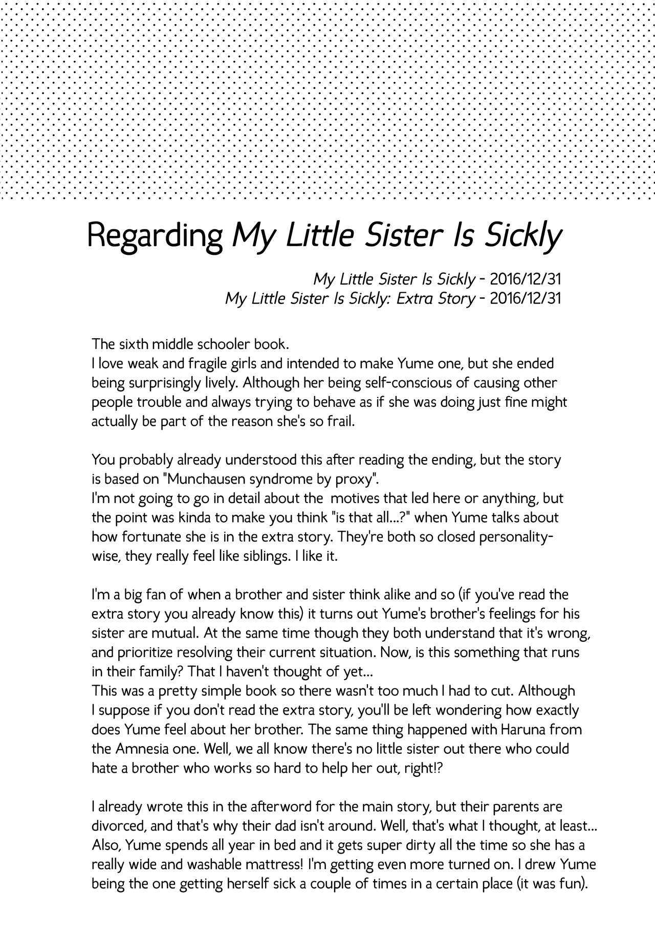 (C91) [squeezecandyheaven (いちはや)] 妹は虚弱体質のおまけ [英訳]Report (C91) [squeezecandyheaven (Ichihaya)] Imouto wa Sickness no Omake | My Little Sister is Sickly: Extra Story [English] [ATF]