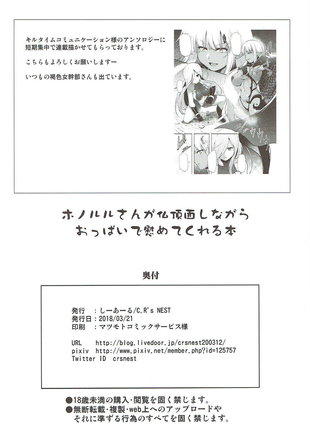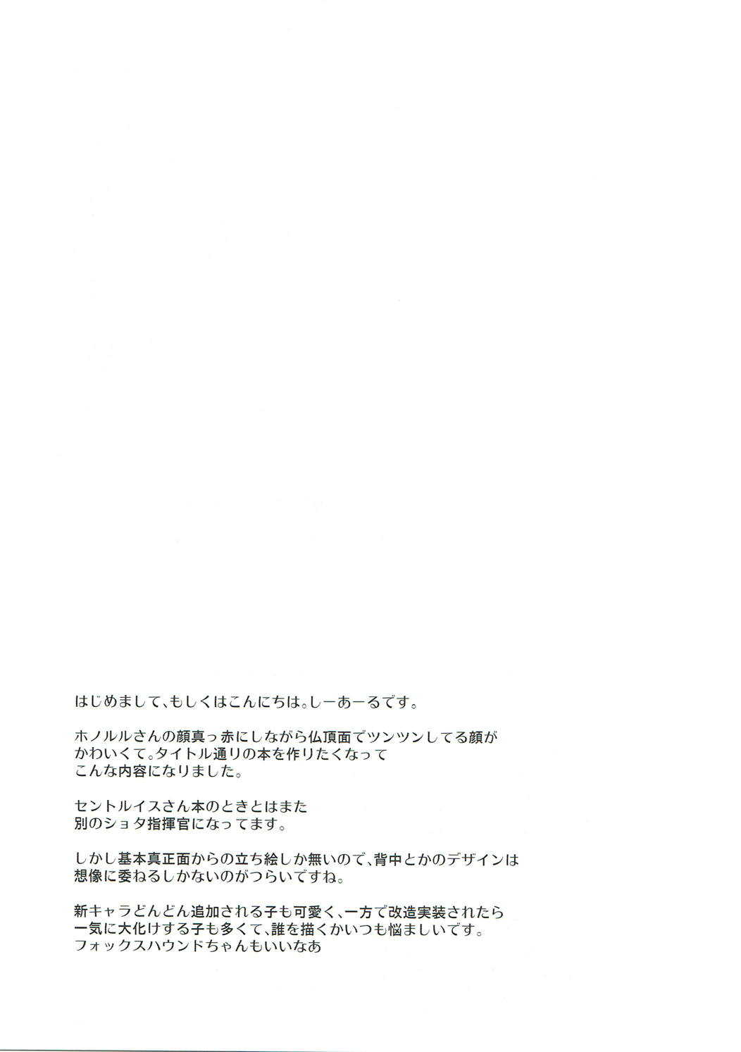 (アズレン夢想) [C.R's NEST (しーあーる)] ホノルルさんが仏頂面しながらおっぱいで慰めてくれる本 (アズールレーン)Report (AzuLan Musou) [C.R's NEST (C.R)] Honolulu-san ga Bucchouzura Shinagara Oppai de Nagusamete Kureru Hon (Azur Lane)