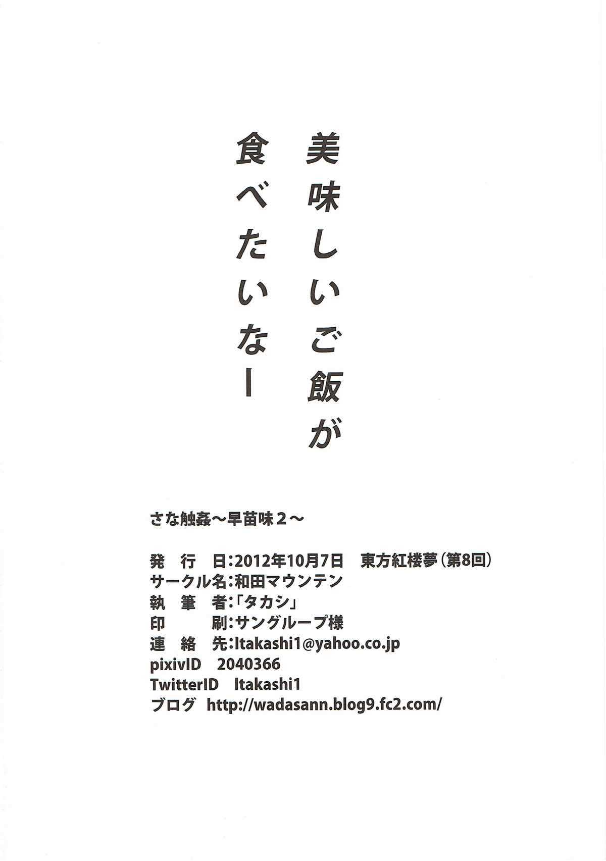 (紅楼夢8) [和田マウンテン (「タカシ」)] さな触姦 ~早苗味2~ (東方Project)Report (Kouroumu 8) [Wada Mountain ("Takashi")] Sana Shokukan ~Sanae Aji 2~ (Touhou Project)