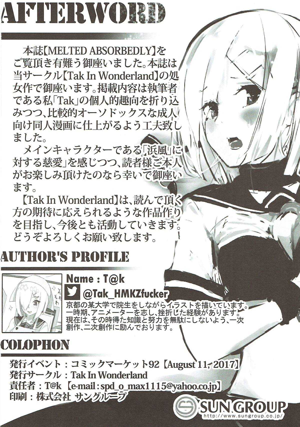(C92) [Tak In Wonderland (T@k)] MELTED ABSORBEDLY (艦隊これくしょん -艦これ-)Report (C92) [Tak In Wonderland (T@k)] MELTED ABSORBEDLY (Kantai Collection -KanColle-)