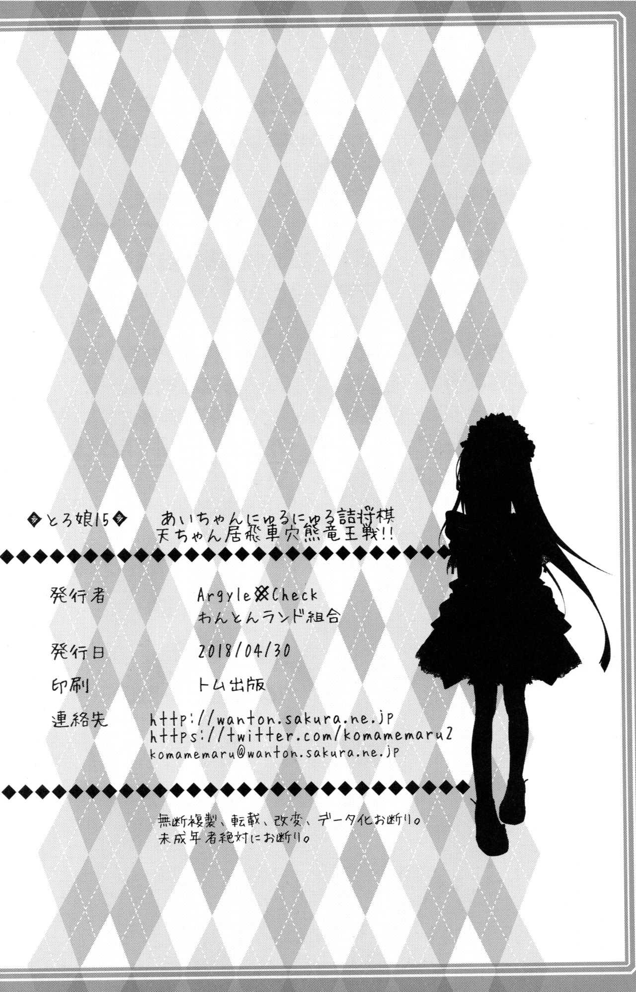 (COMIC1☆13) [Argyle◇check、わんとんランド組合 (こまめ丸)] とろ娘15 あいちゃんのにゅるにゅる詰将棋! 天ちゃんの居飛車穴熊竜王戦!! (りゅうおうのおしごと!)Report (COMIC1☆13) [Argyle check, Wanton Land Kumiai (Komamemaru)] Toro Musume 15 Ai-chan no Nyuru Nyuru Tsume Shogi! Takashi-chan no Ibisha Anaguma Ryuuou-sen!! (Ryuuou no Oshigoto!)