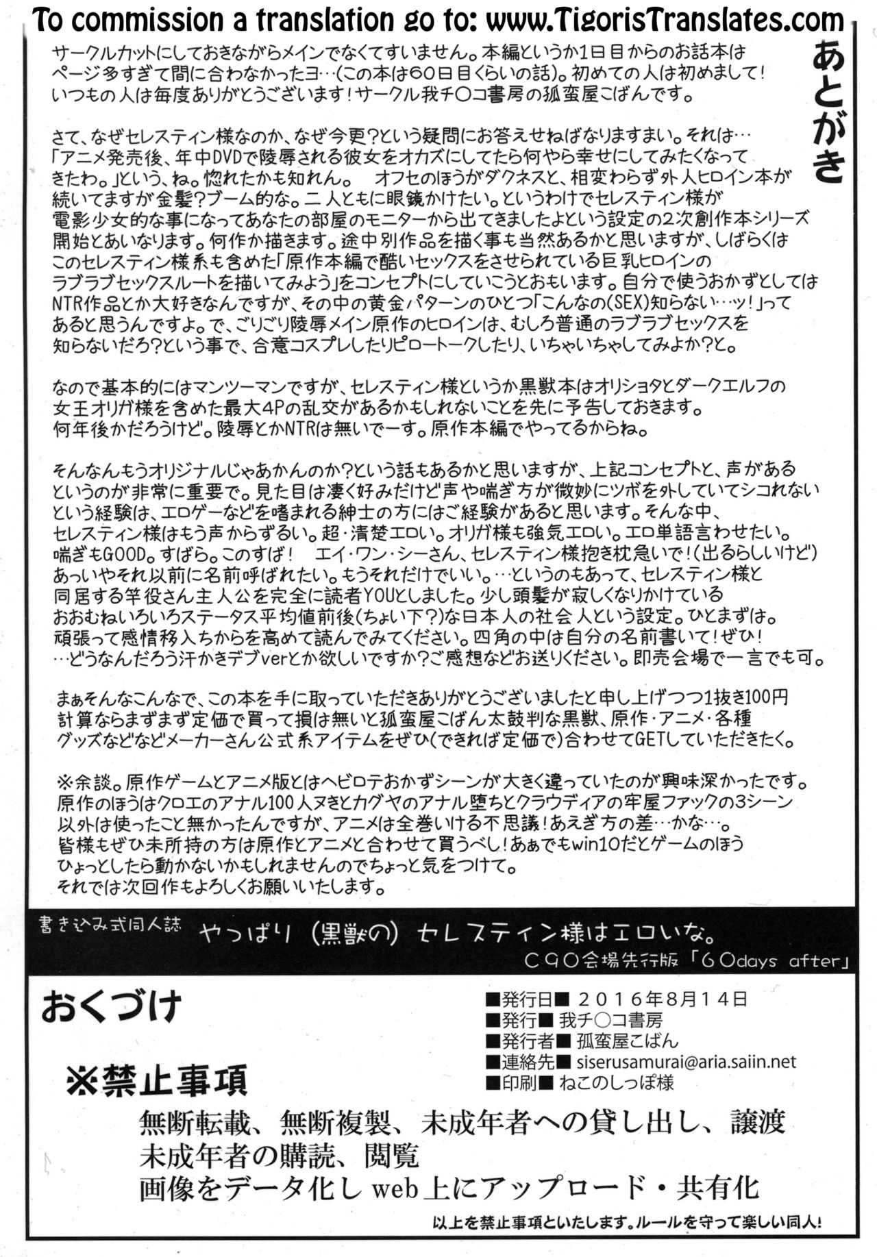 (C90) [我チ○コ書房 (孤蛮屋こばん)] やっぱり(黒獣の)セレスティン様はエロいな (黒獣~気高き聖女は白濁に染まる~) [英訳]