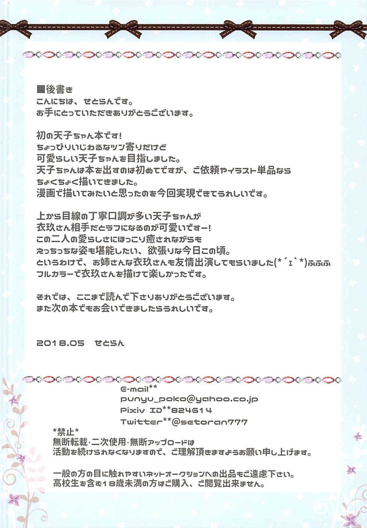 (例大祭15) [せとらん (イトウせと、タンノらん)] 天人だけどセックスしたい! (東方Project)Report (Reitaisai 15) [Setoran (Itou Seto, Tanno Ran)] Tennin dakedo Sex Shitai! (Touhou Project)