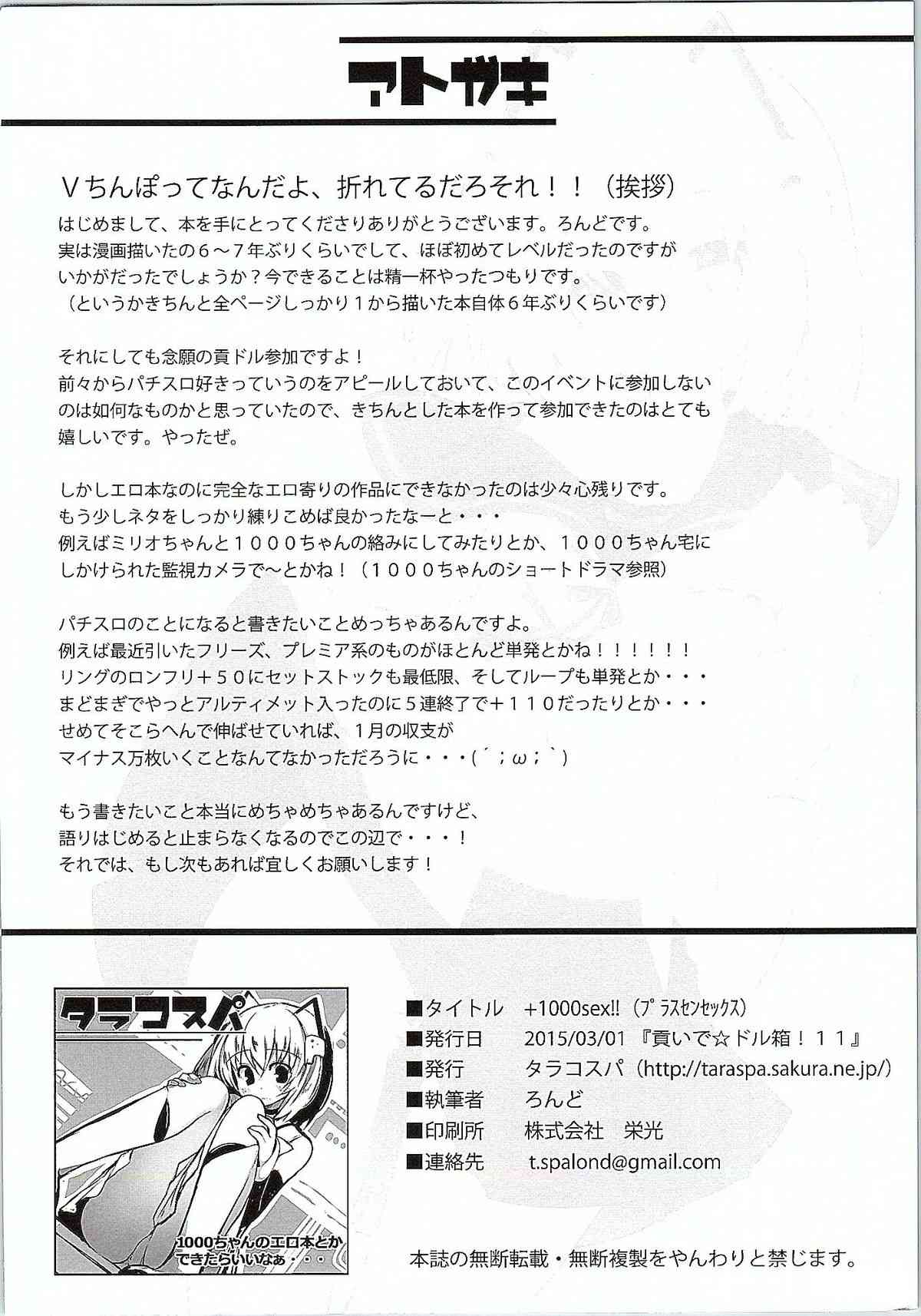 (貢ドル11) [タラコスパ (ろんど)] +1000sex!! (1000ちゃん)Report (Mitsudol 11) [Tarakospa (lond)] +1000sex!! (1000-chan)