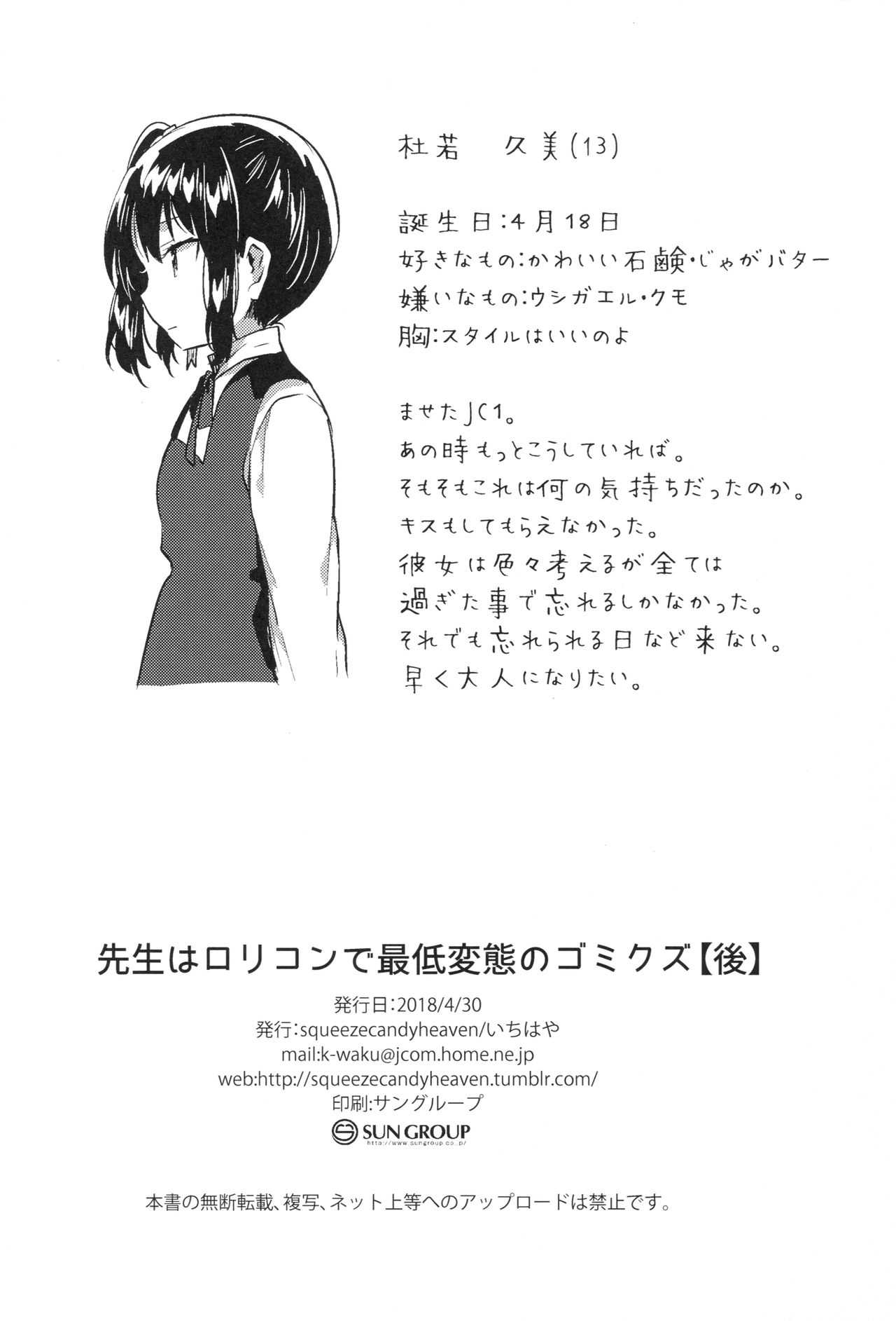 (COMIC1☆13) [squeezecandyheaven (いちはや)] 先生はロリコンで最低変態のゴミクズ【後】Report (COMIC1☆13) [squeezecandyheaven (Ichihaya)] Sensei wa Lolicon de Saitei Hentai no Gomikuzu [Kou]